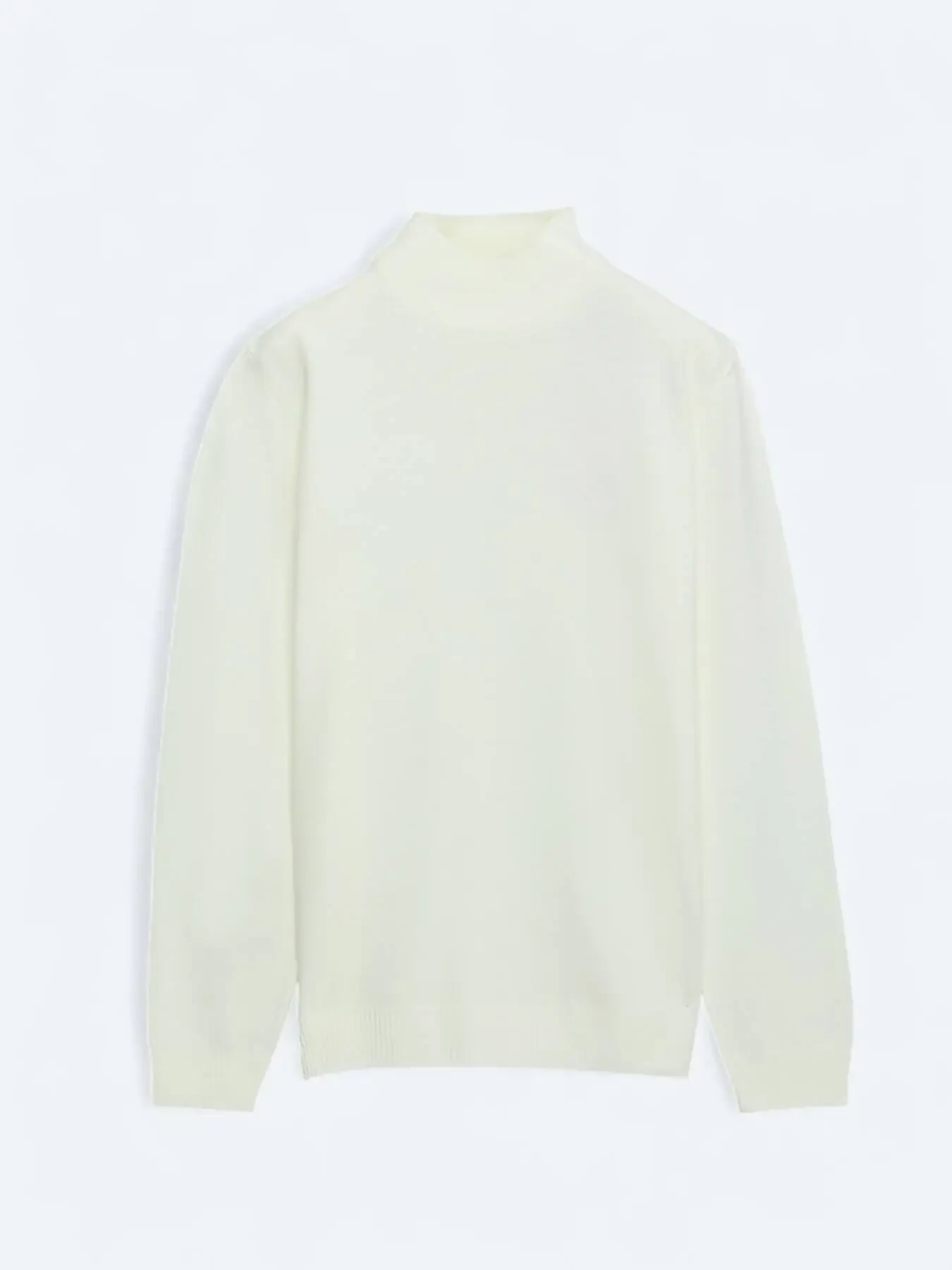 Ekru Yarım Balıkçı Yaka Düz Örgü Triko Kazak - 1