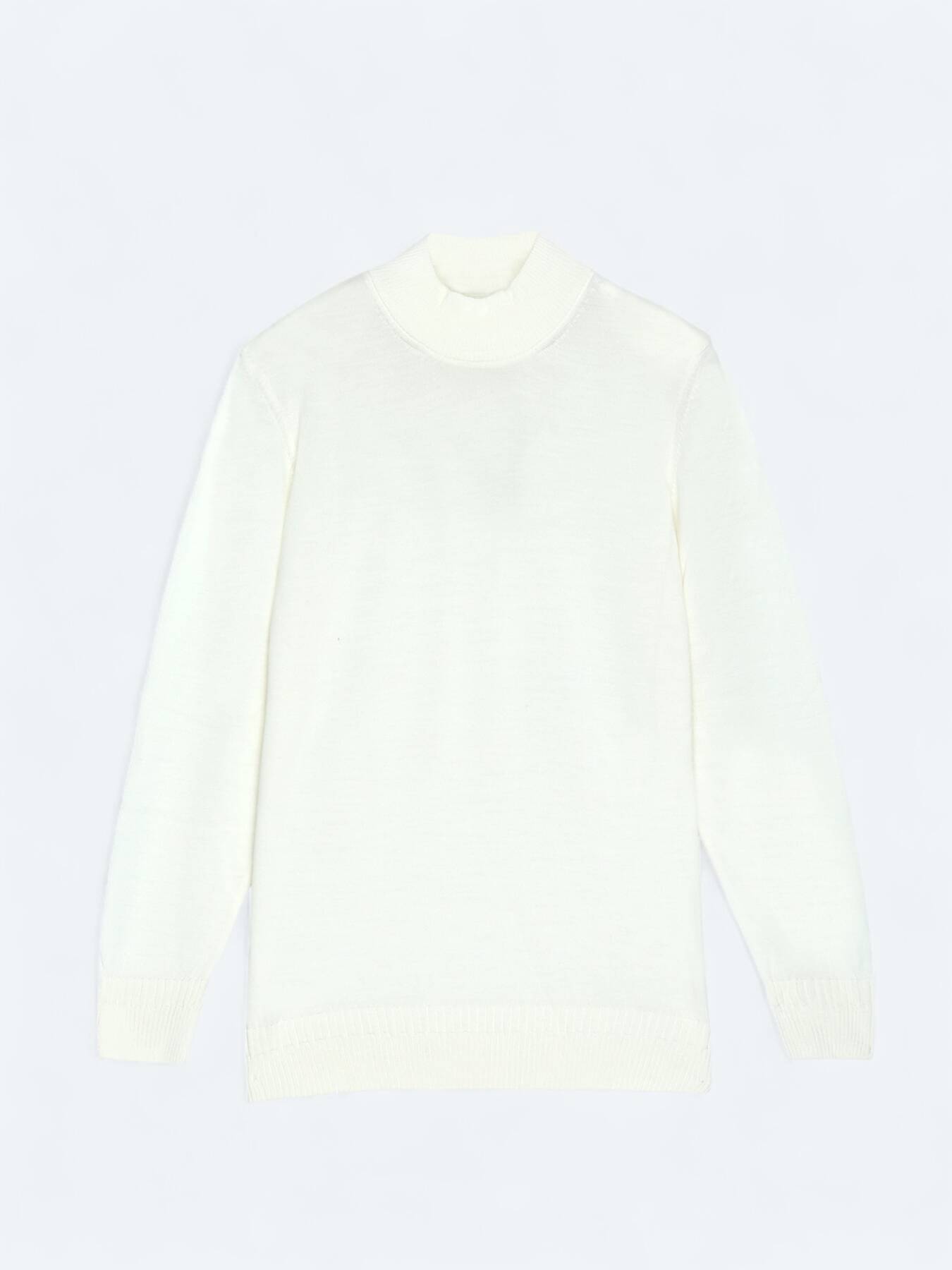 Jakarlı yarım balıkçı yaka triko, yün ve akriliğin dengesini sunar.