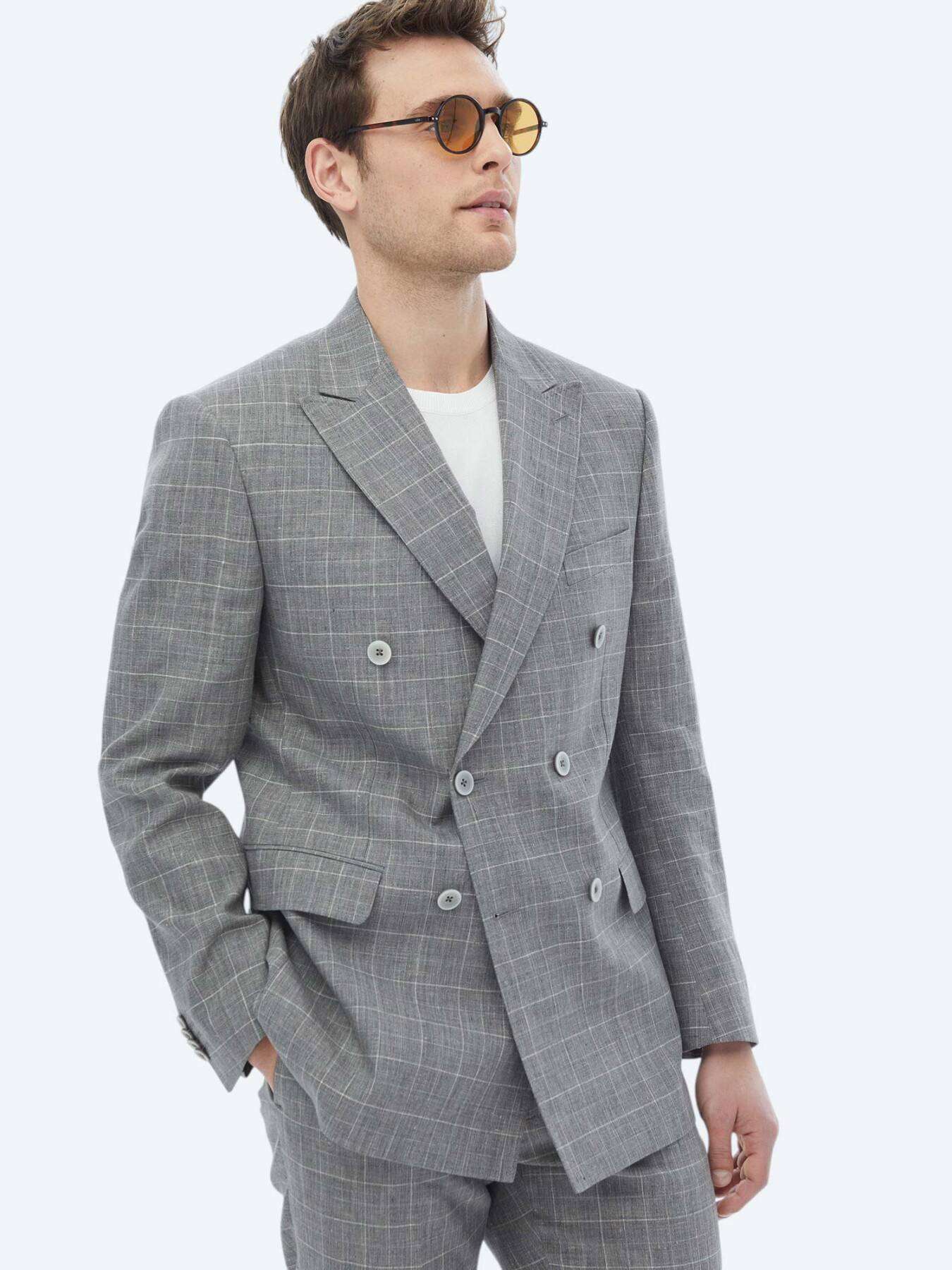 Model: Height: 185 cm, Chest: 98 cm, Waist: 78 cm, Hips: 96 cm, Size: 48