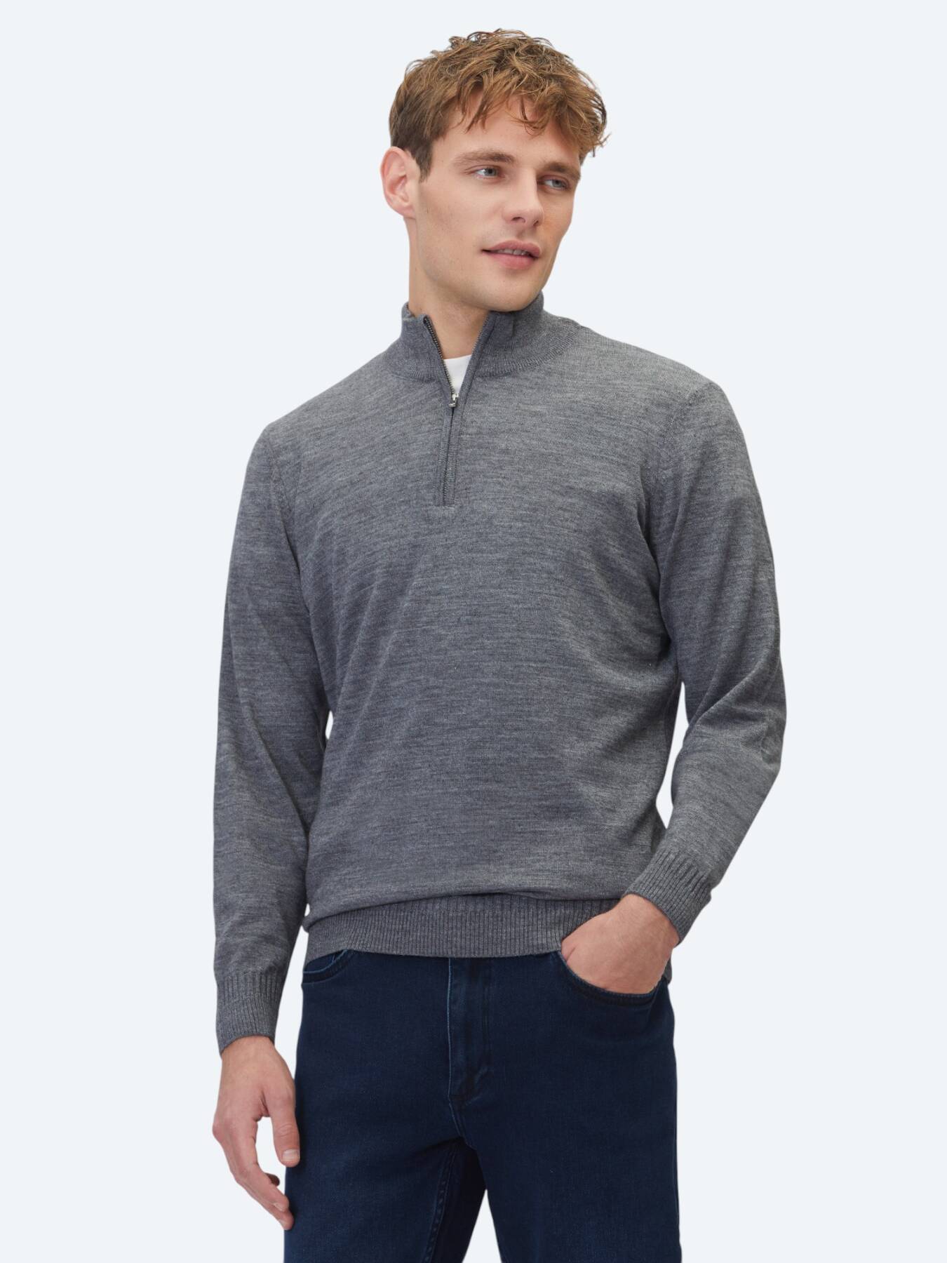 Notify me when its in stockZamansız gri rengi ve sade tasarımıyla öne çıkan bu triko günlük şıklığı konforla birleştiren güçlü bir temel parçadır. %50 yün içeriği sayesinde doğal sıcaklık dengesi sunarak serin havalarda ideal bir kullanım sağlarken, %50 akrilik katkısı trikonun hafifliğini artırır ve formunu uzun süre korumasına yardımcı olur.