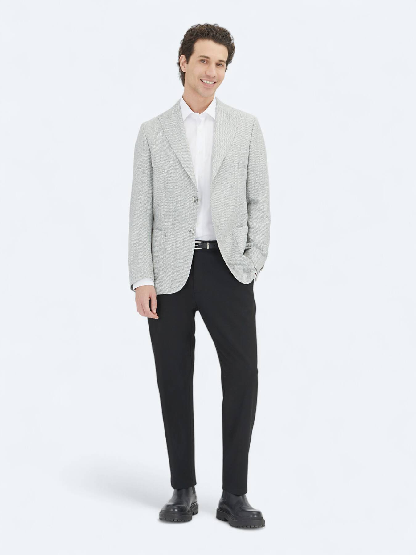 Model: Height: 187 cm, Chest: 98 cm, Waist: 78 cm, Hips: 96 cm, Size: 48