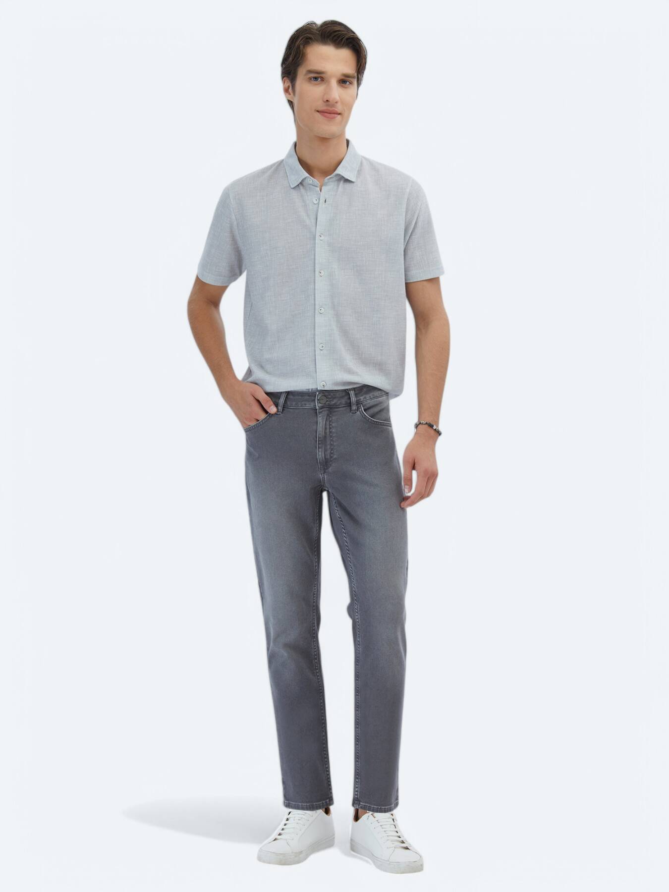 Notify me when its in stockSmart Collection's modern touch to urban style: Standing out with its patterned structure and classic collar detail, this shirt offers a light, durable and suitable use for summer days with its fabric blend.