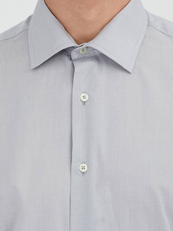 Grey Regular Fit Weaving Classical Cotton Blended Shirt - 3