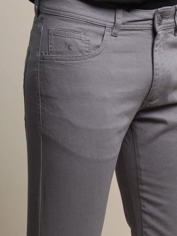 Grey Weaving Slim Fit Casual Cotton Blended Trousers