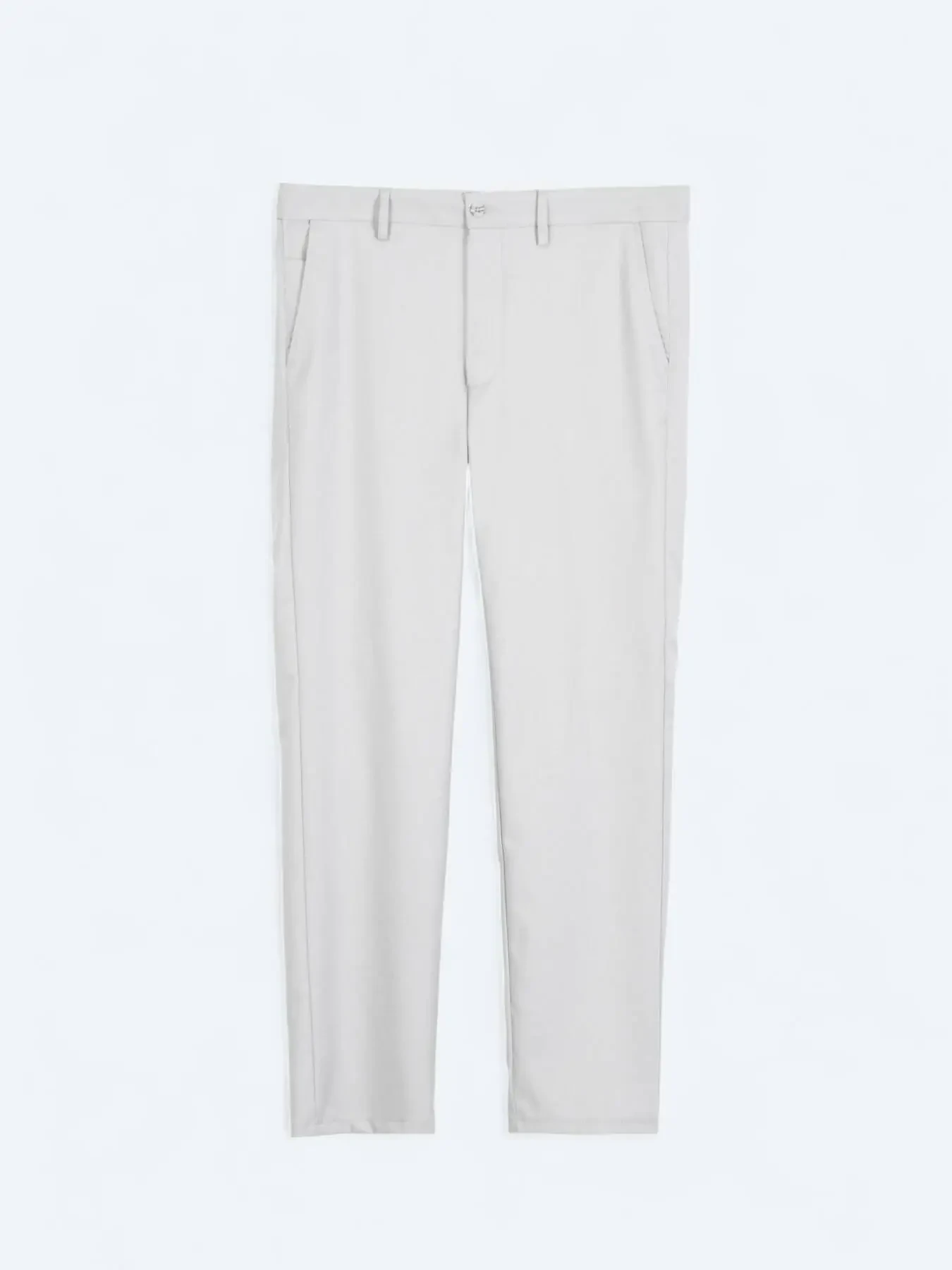 Gri Düz Dokuma Regular Fit Casual Pantolon