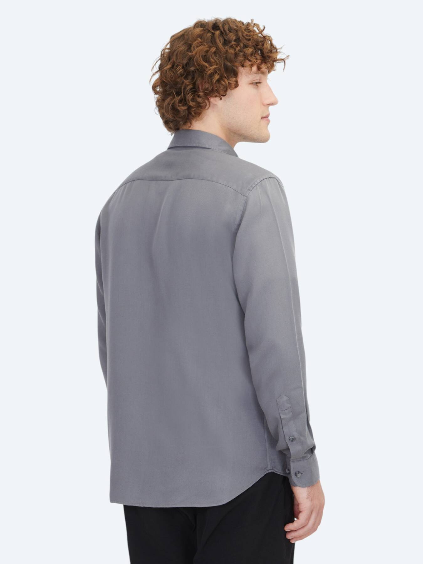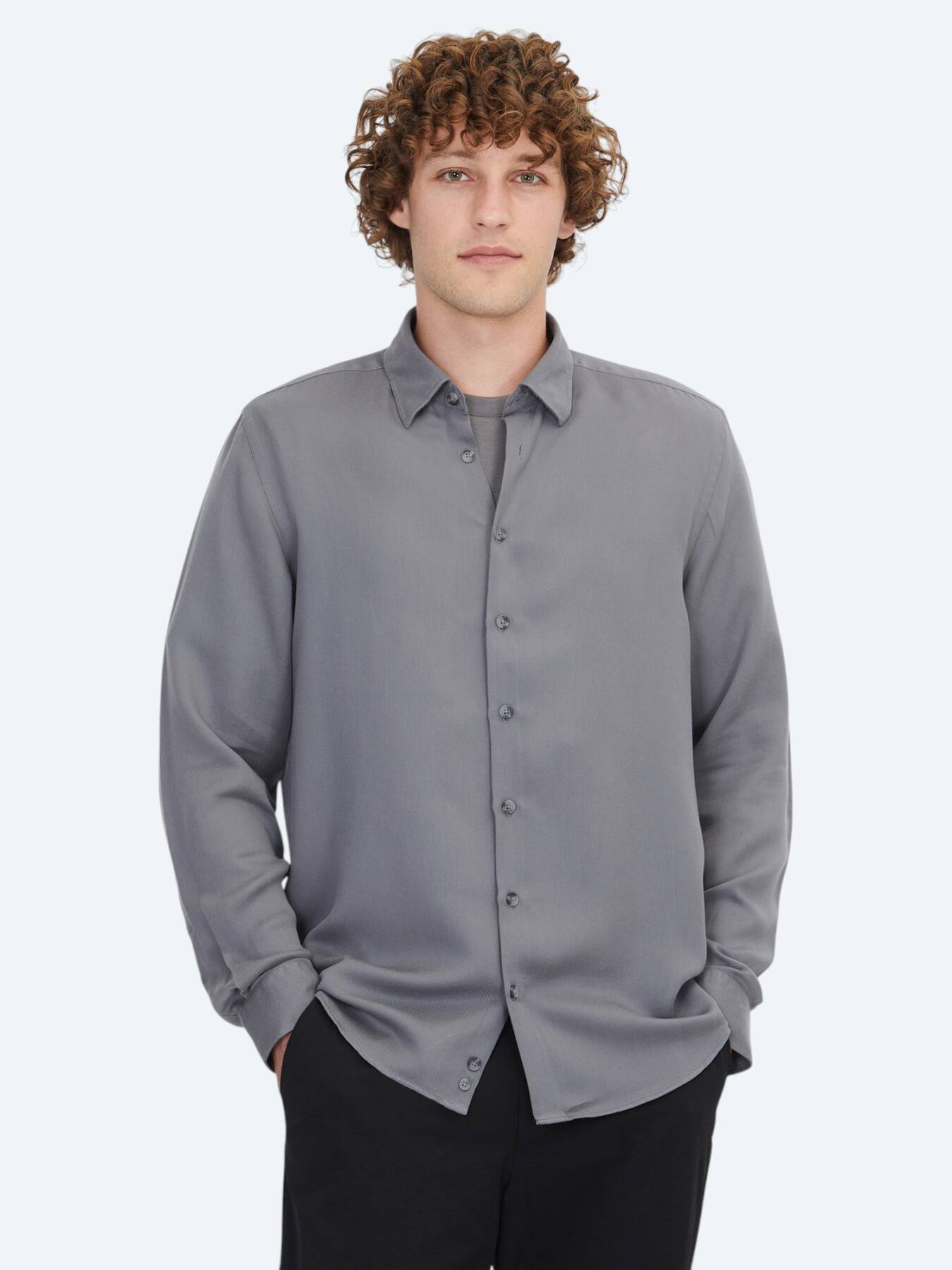 Grey Plain Regular Fit Weaving Casual Shirt