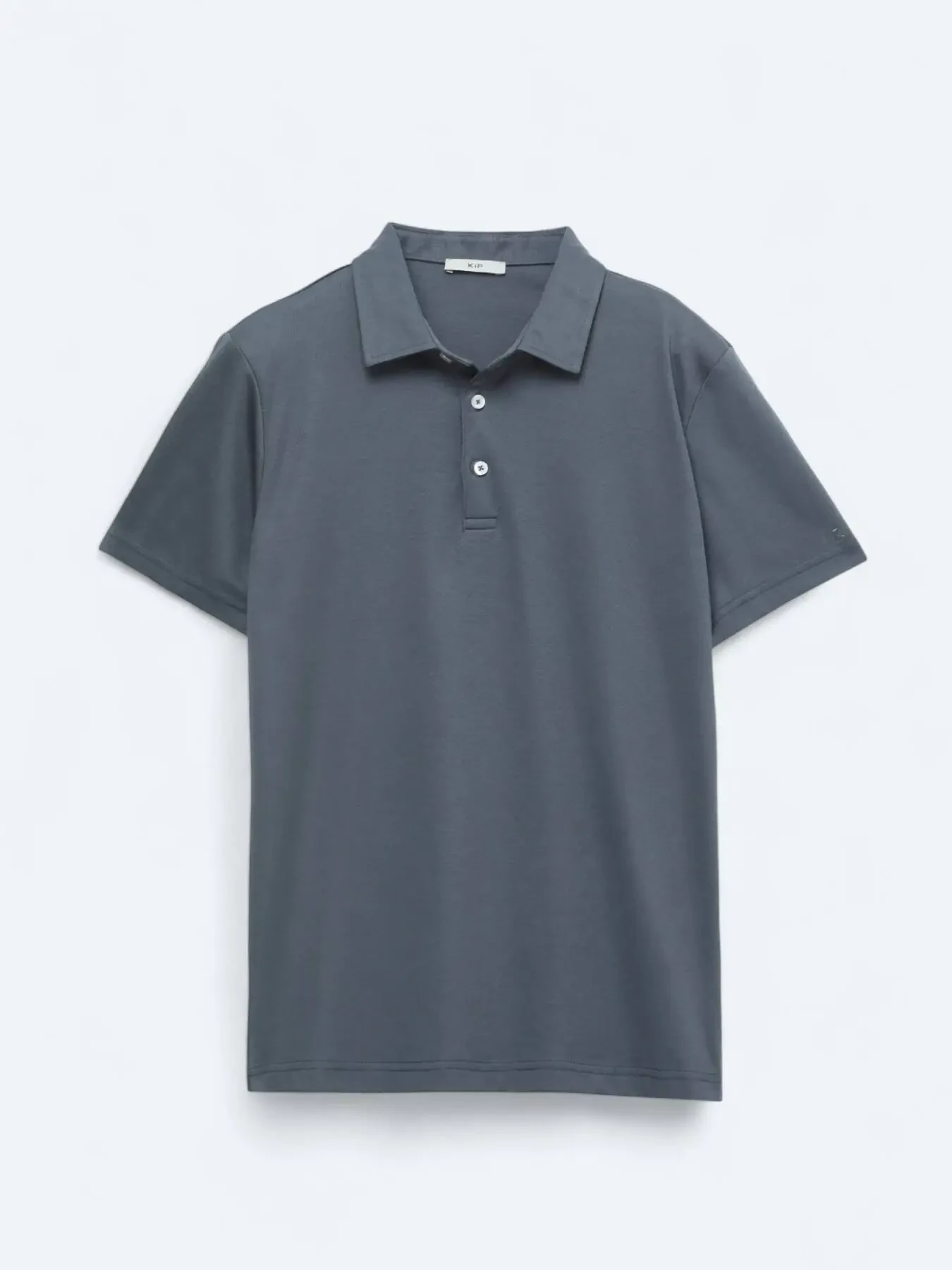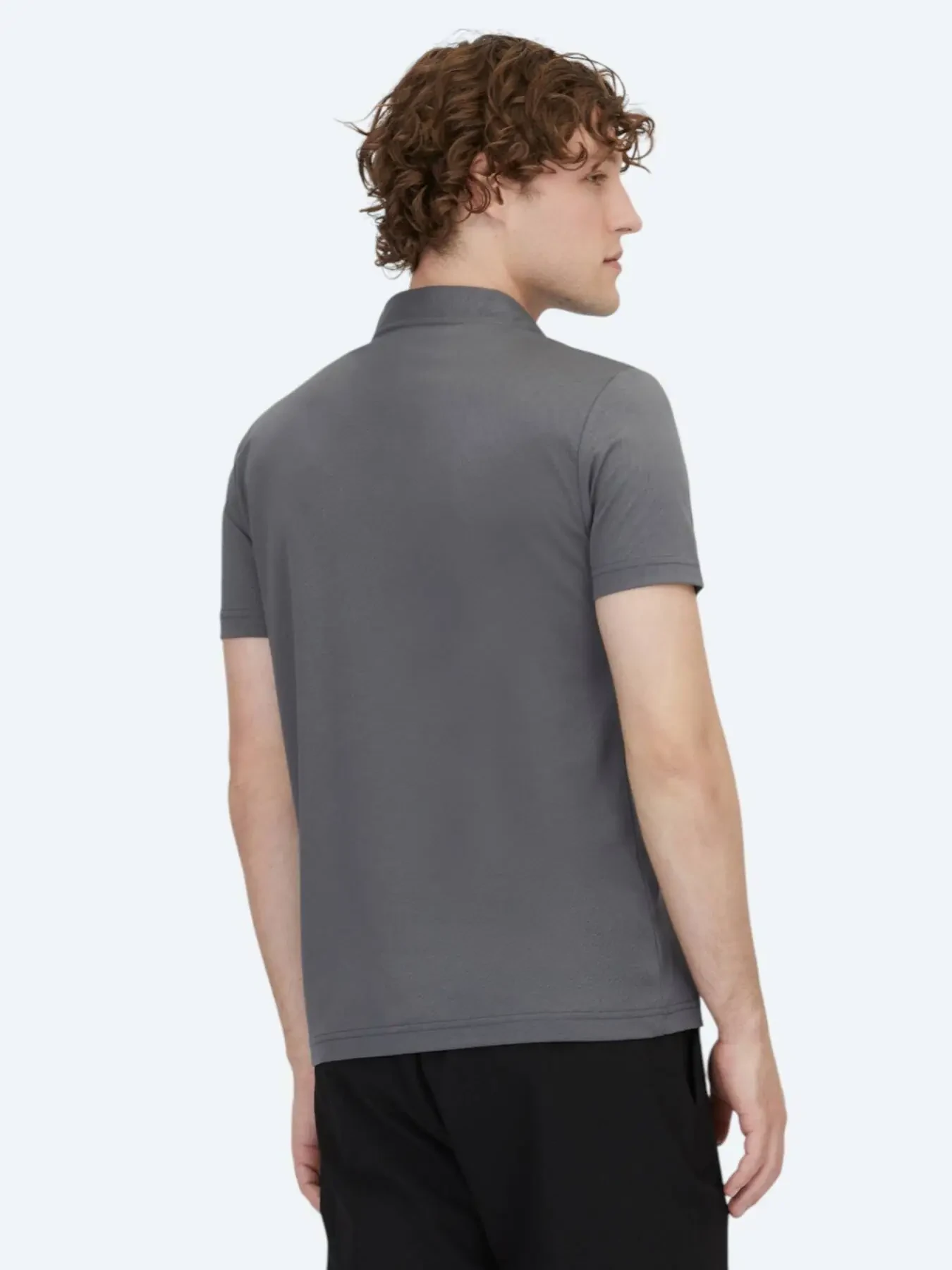 Gri Polo Yaka Pamuk Karışımlı T-Shirt
