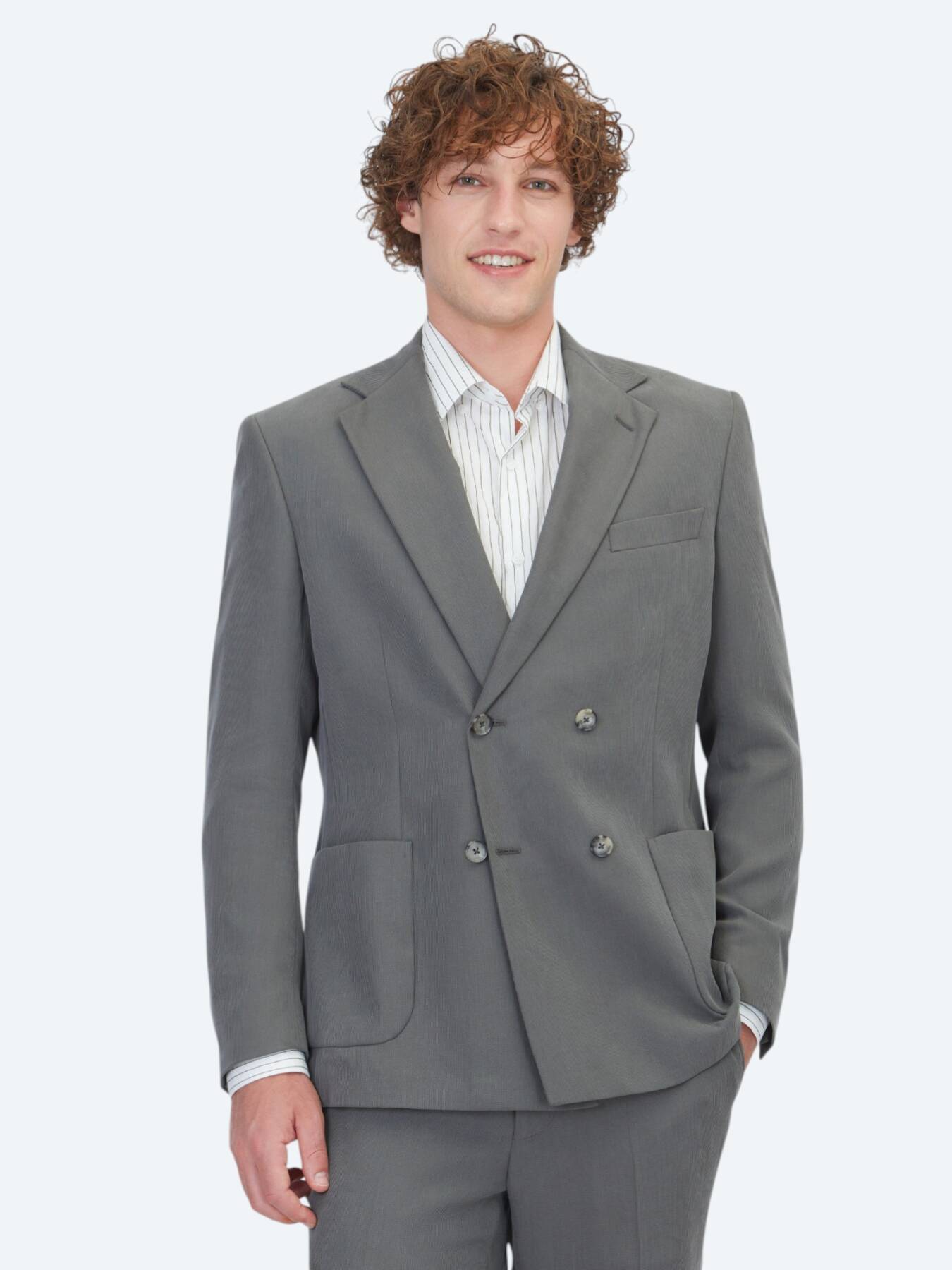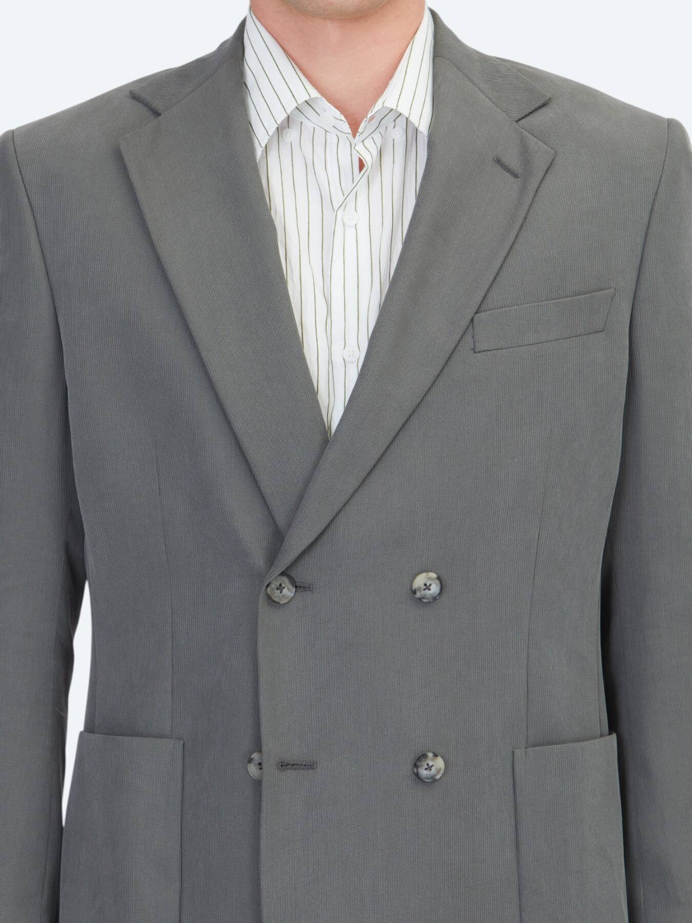 Haki Çizgili Modern Fit Takım Elbise