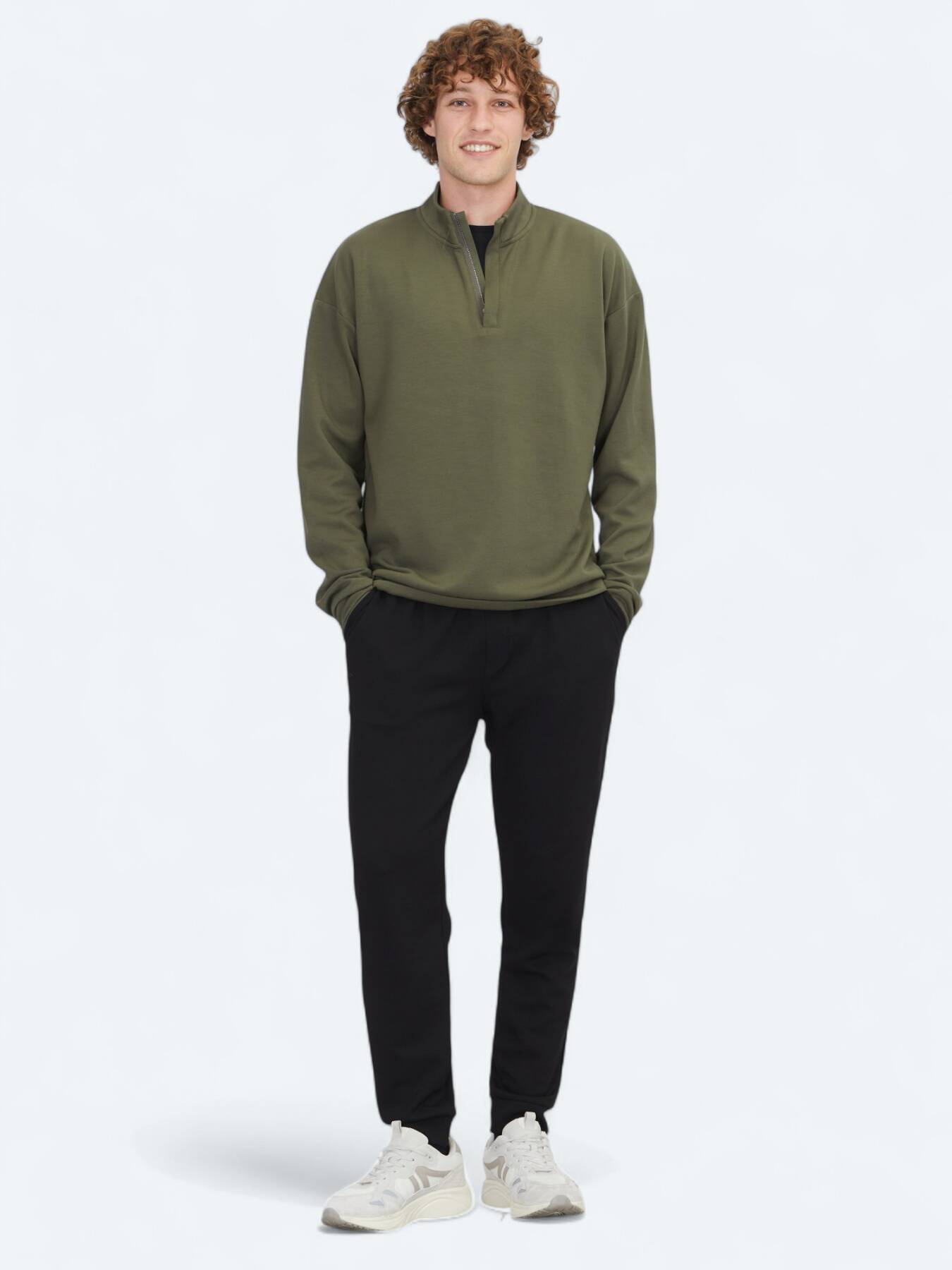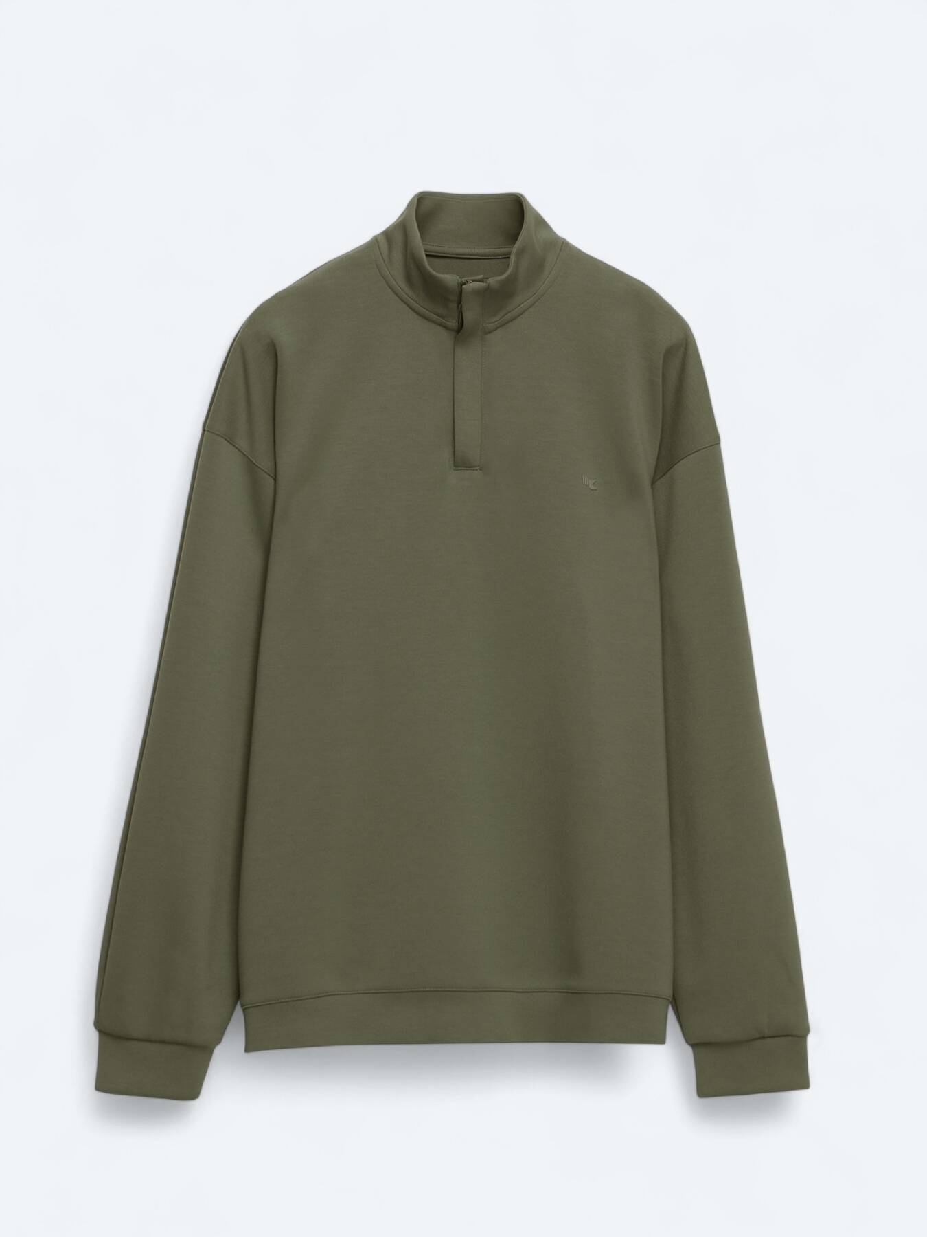 Re-Charge koleksiyonunda kışın konforunu şıklıkla buluşturan bu kiremit sweatshirt, dik yaka detayıyla modern bir görünüm sunar.
