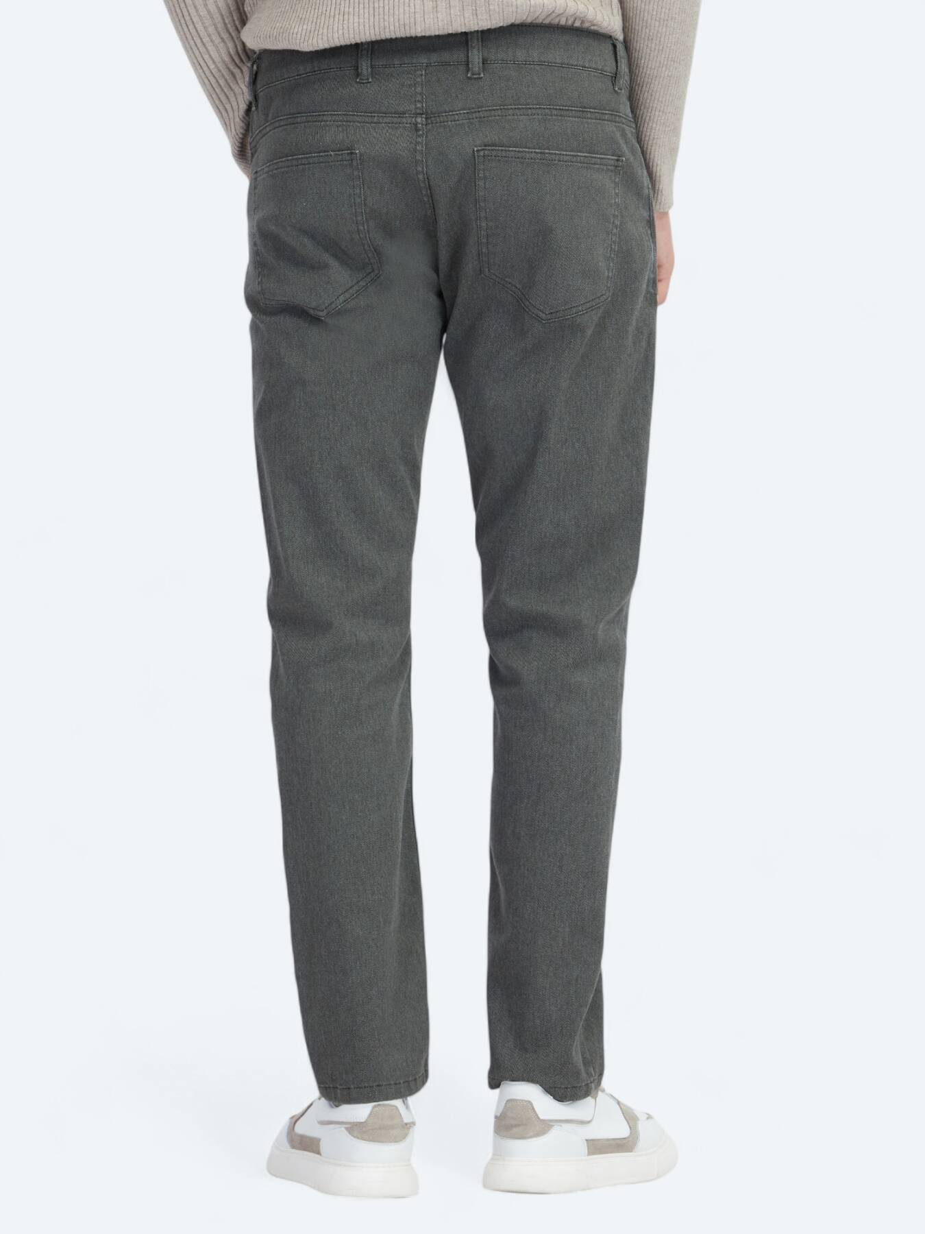Klasik paça ve regular fit kalıbı sayesinde şık bir siluet oluşturur.