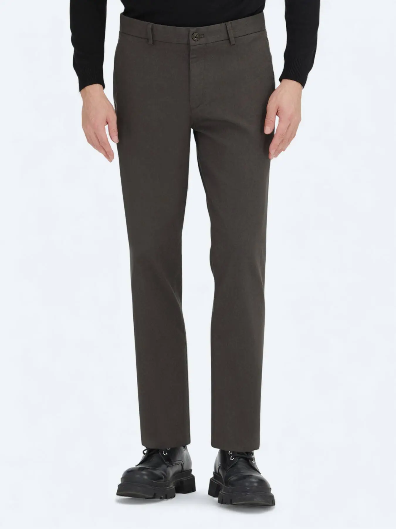 Haki Düz Dokuma Regular Fit Casual Pamuk Karışımlı Pantolon - 1