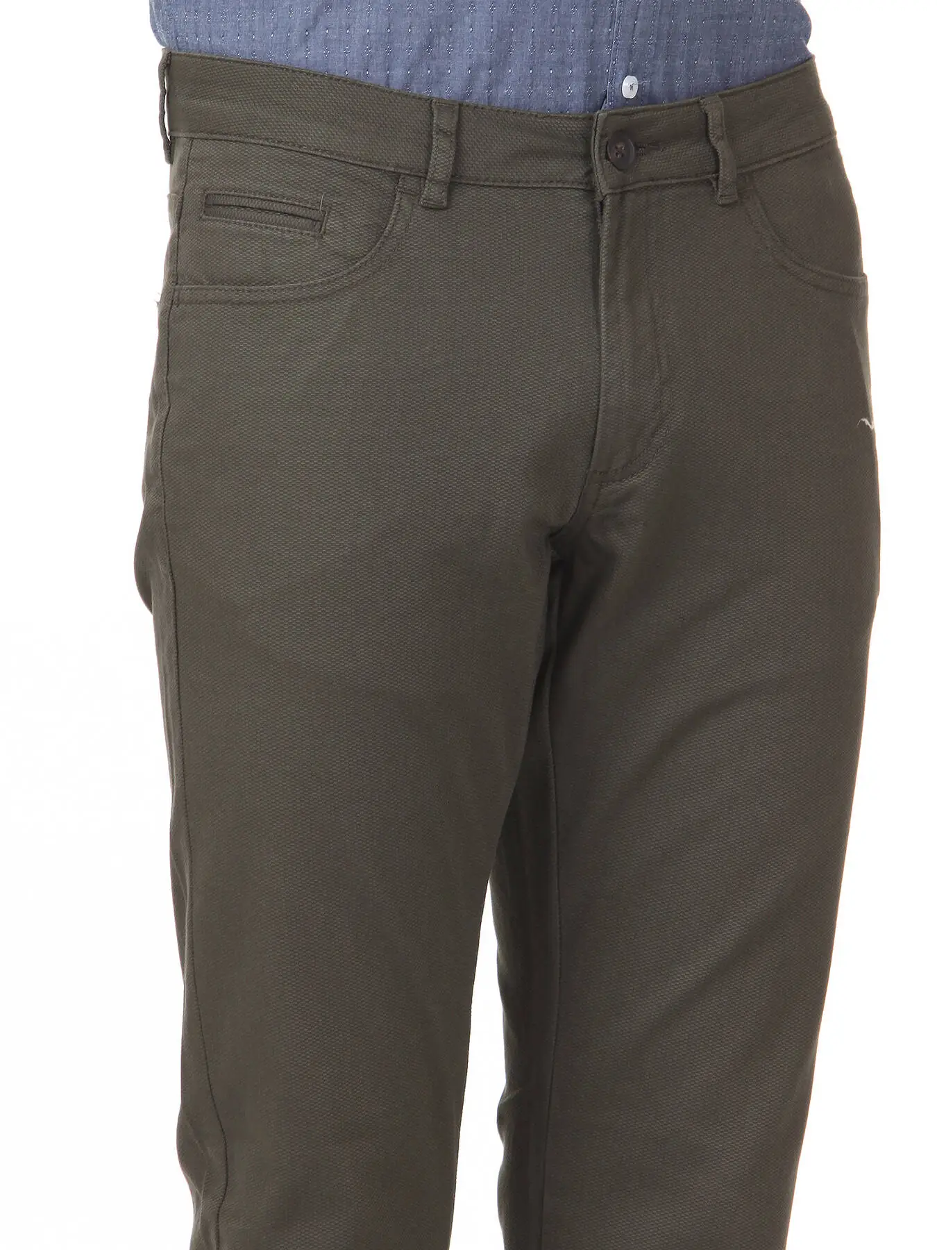 Khaki Weaving Slim Fit Casual Cotton Blended Trousers