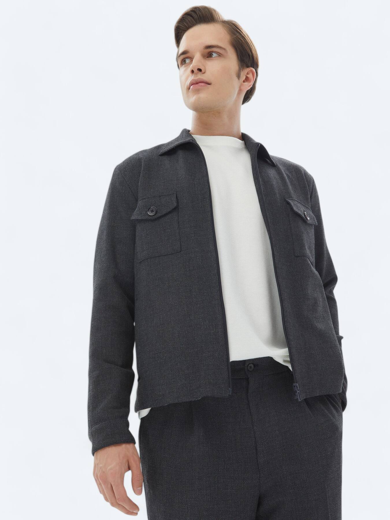 Model: Height: 188 cm, Chest: 100 cm, Waist: 79 cm, Hips: 96 cm, Size: 48
