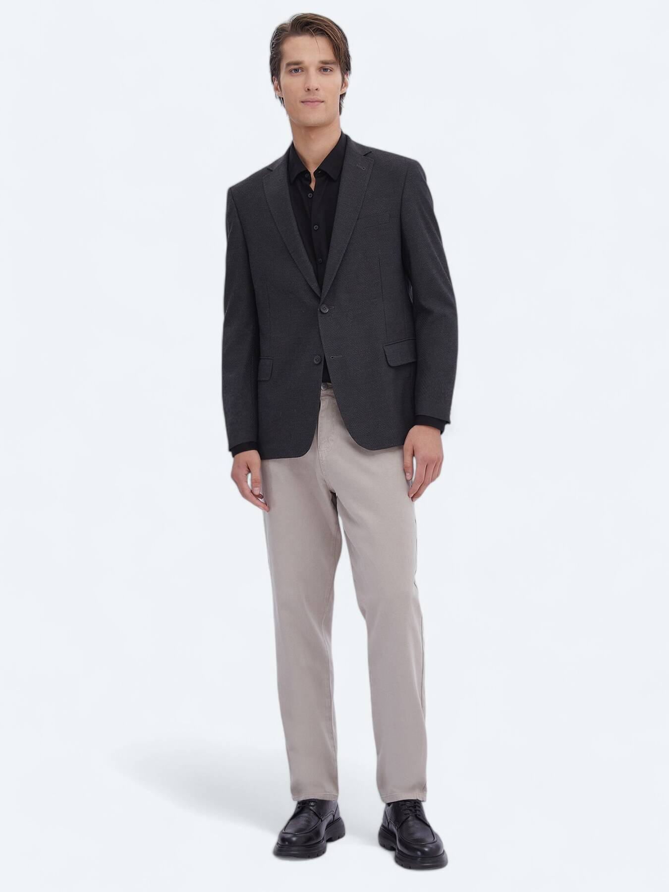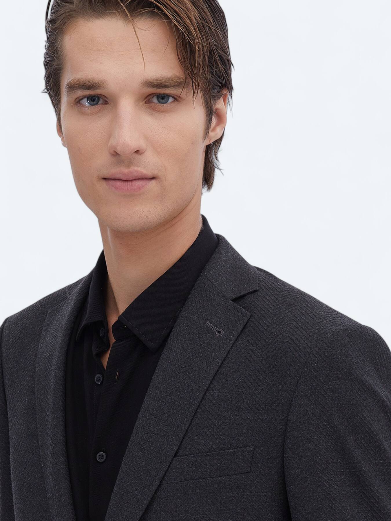 Model: Height: 189 cm, Chest: 94 cm, Waist: 77 cm, Size: 48