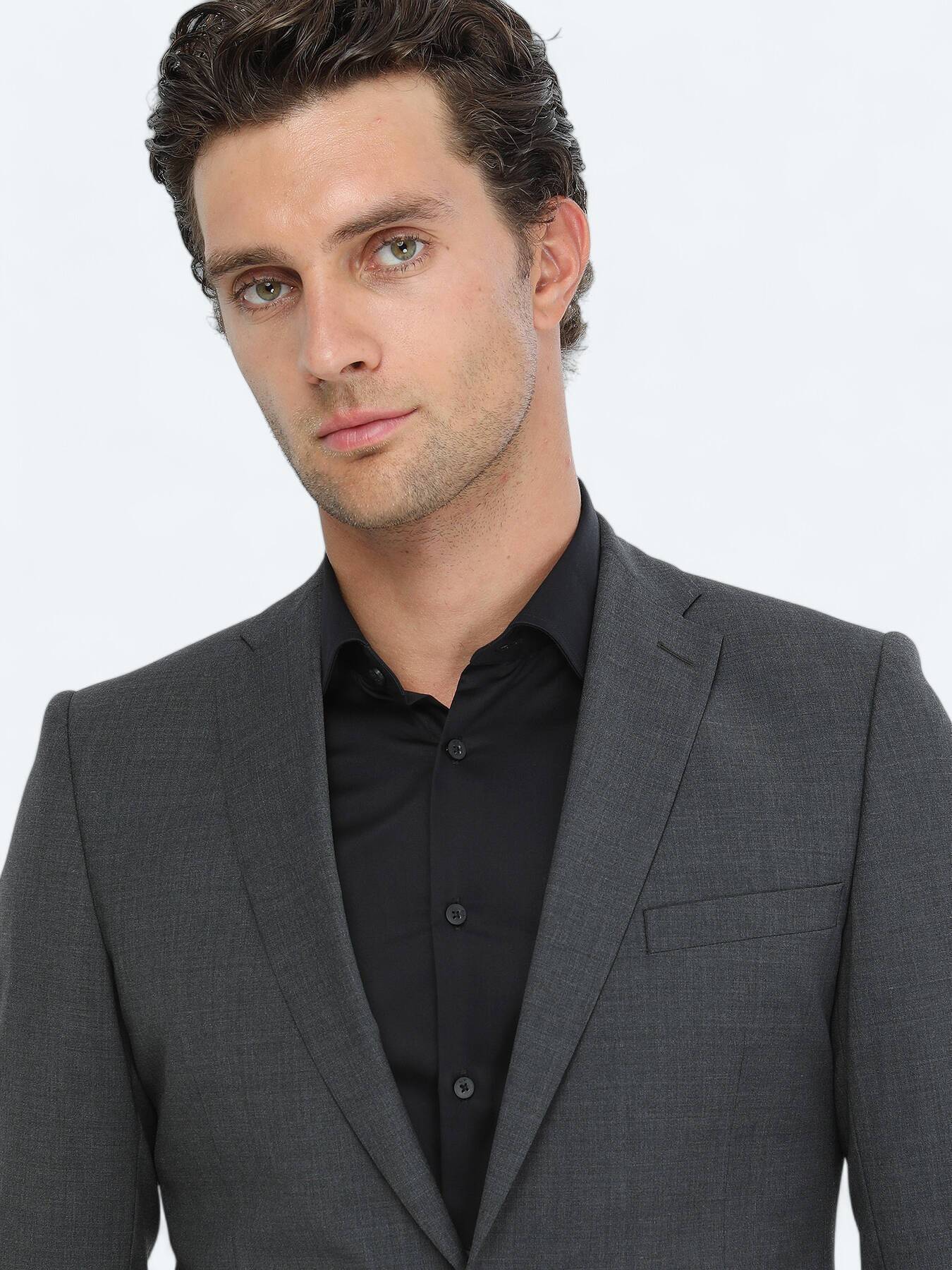Hard Coal Plain Modern Fit Wool Blended Suit