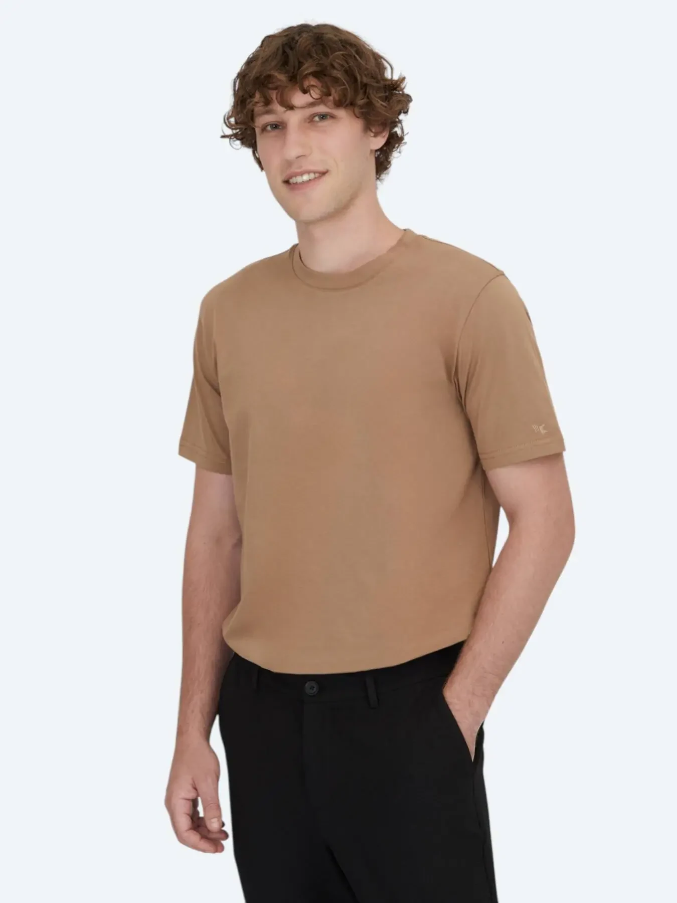 Kahverengi Bisiklet Yaka %100 Pamuk T-Shirt