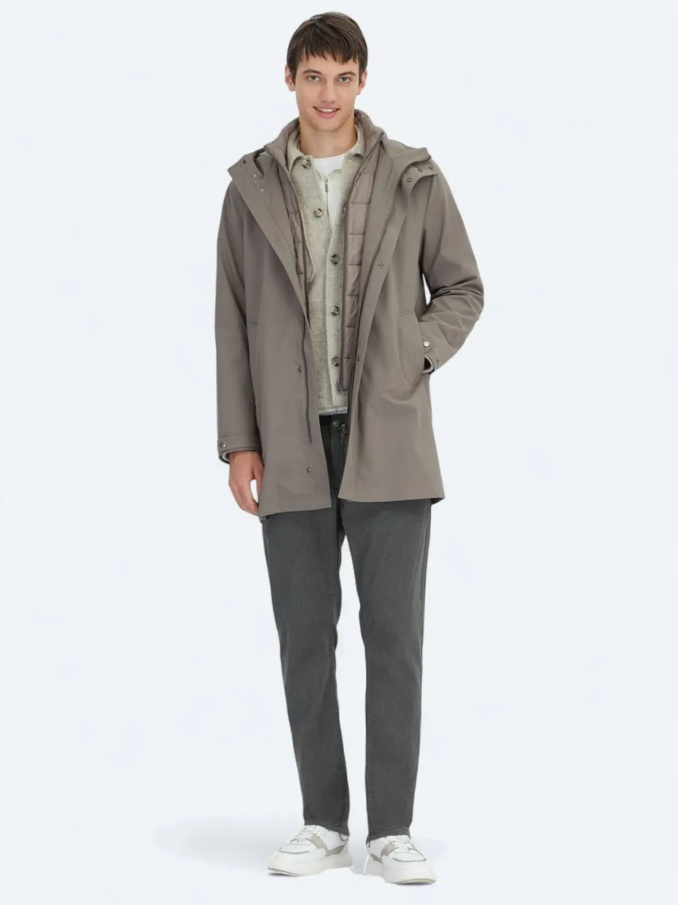 Khaki Oversize Fit Double Breasted Collar Casual Weaving Rain Coat