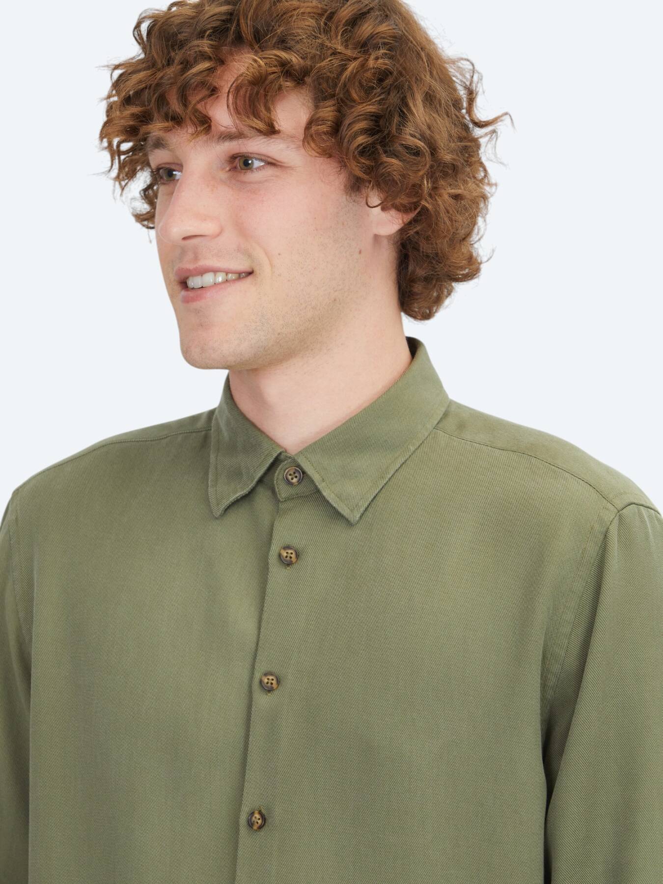 Notify me when its in stockOffering a comfortable elegance with its soft texture and flowing form, this khaki shirt is made of 100% Lyocell fabric.