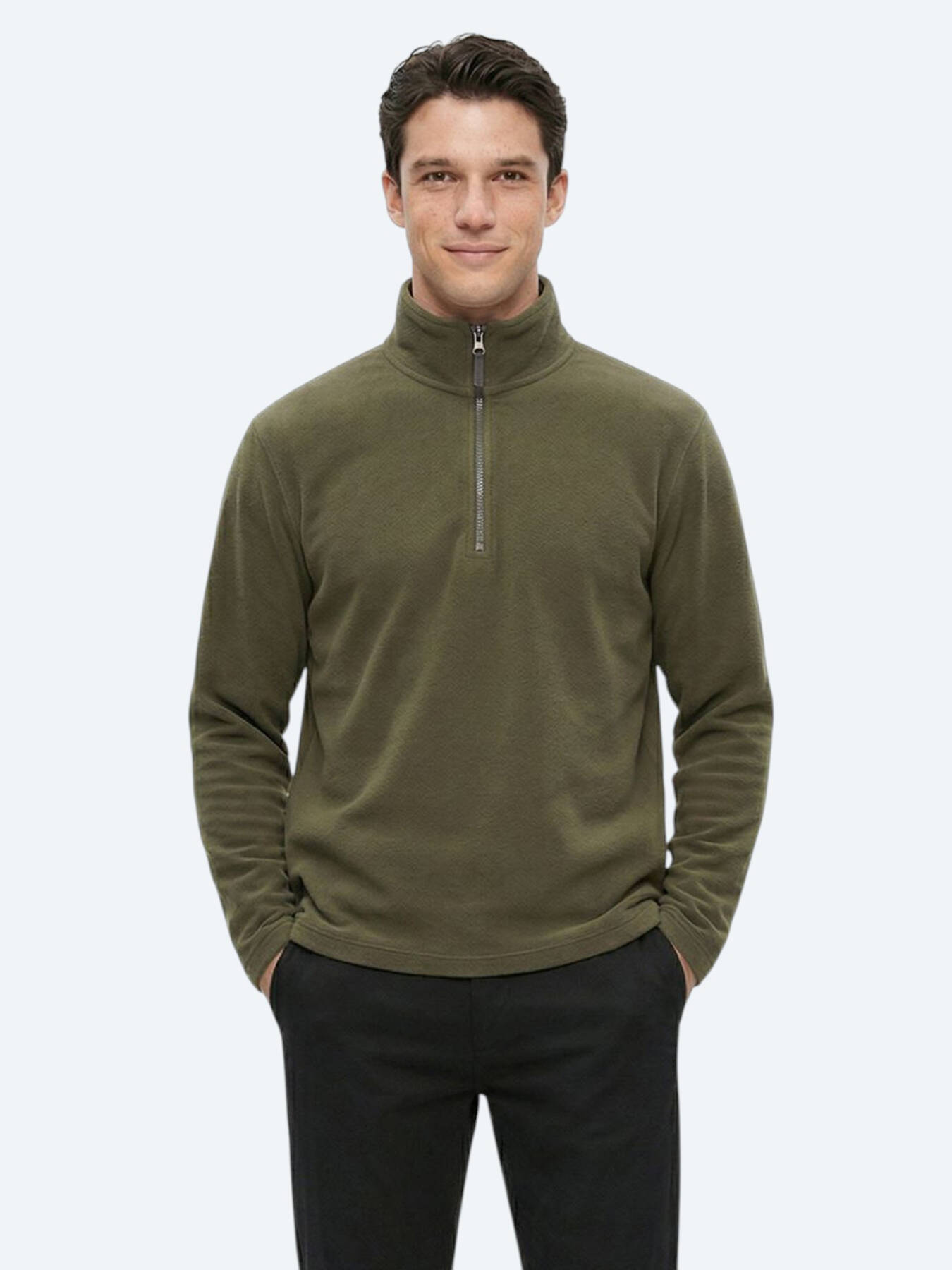Khaki Turtleneck Plain Sweatshirt - 6