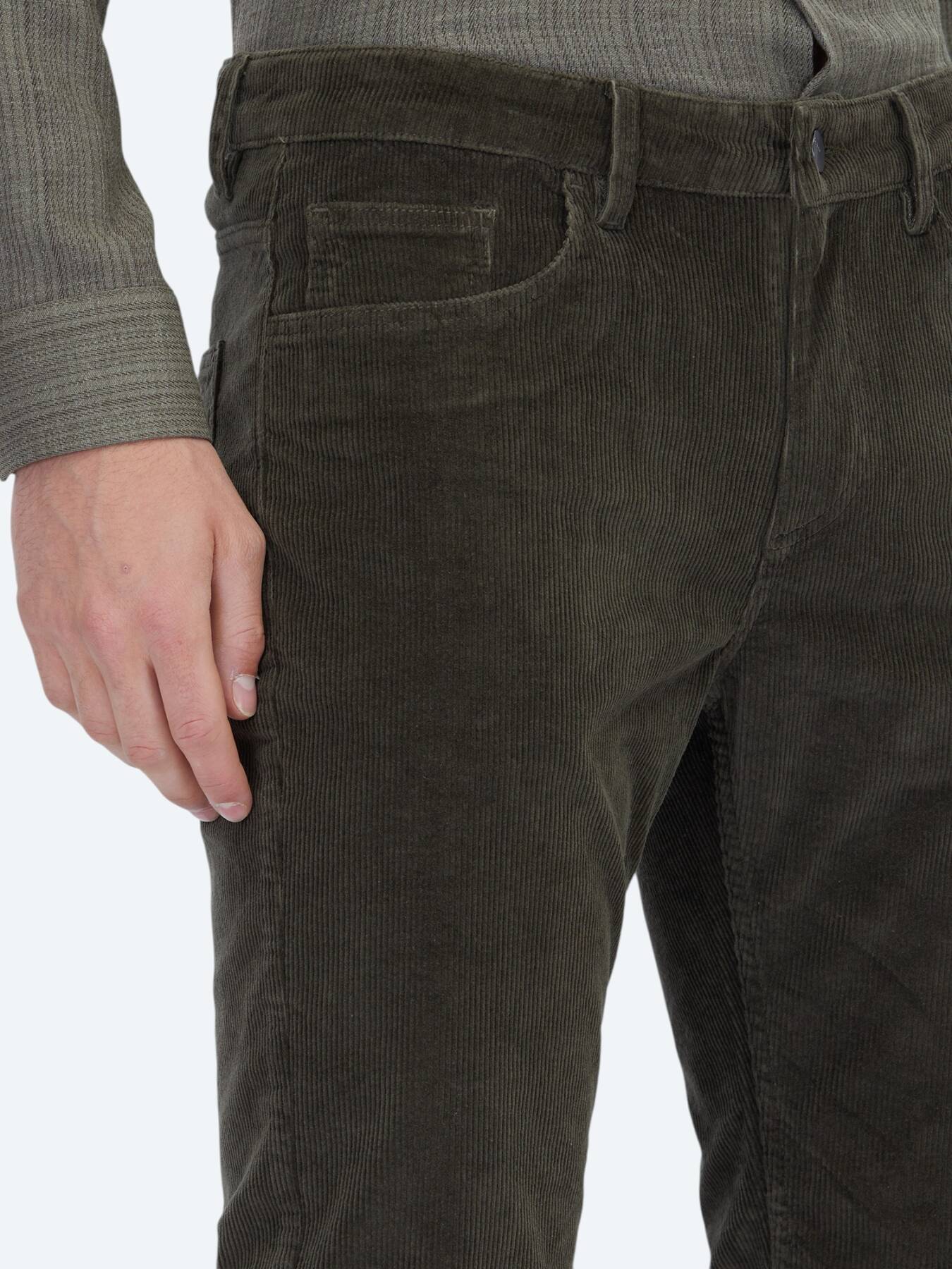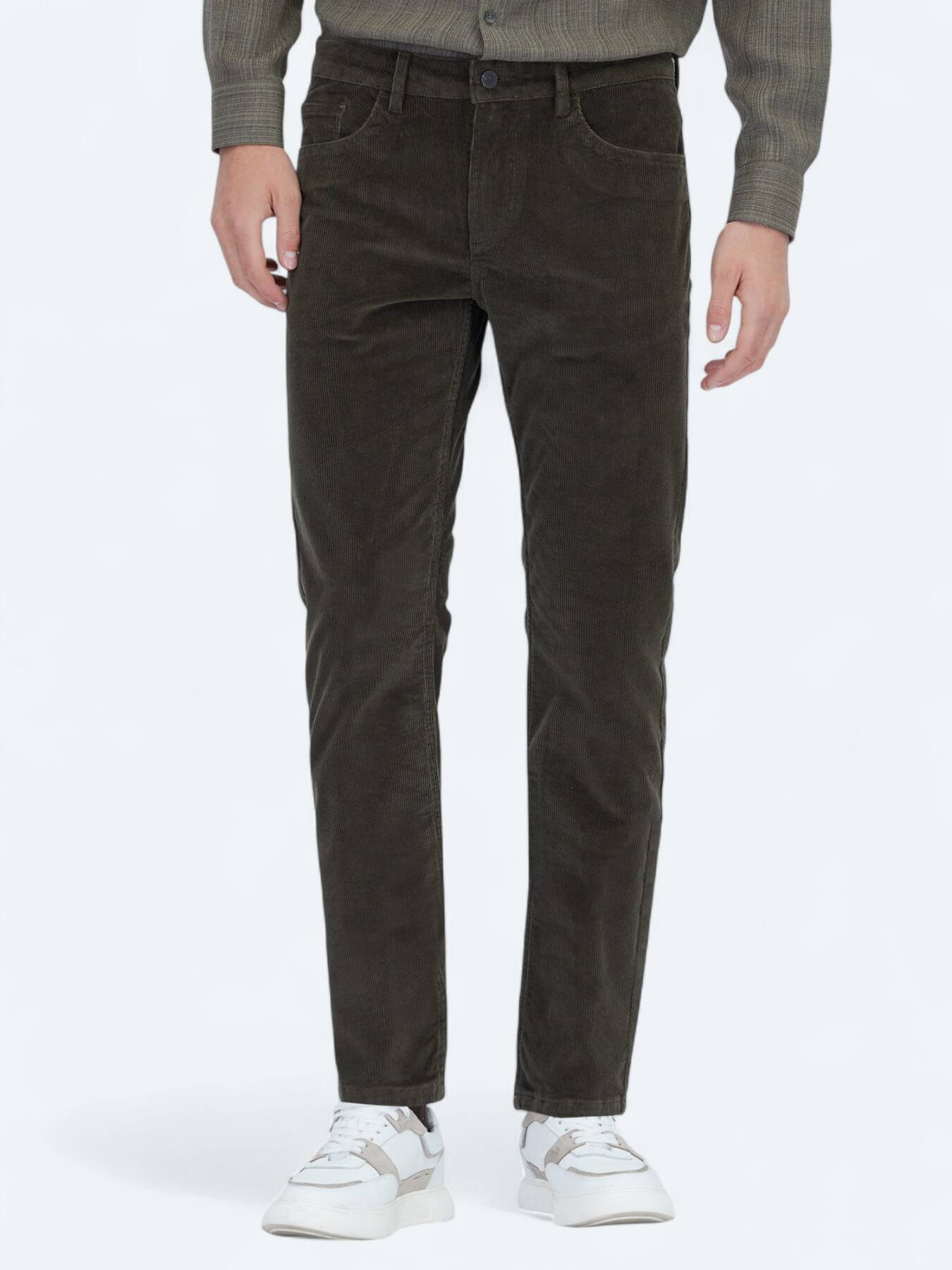 Its slim fit cut elegantly follows the leg line, offering a balanced and stylish stance; ideal for those who want a simple yet impressive silhouette. The khaki color creates a serene effect that merges with nature and blends seamlessly with neutral tones.