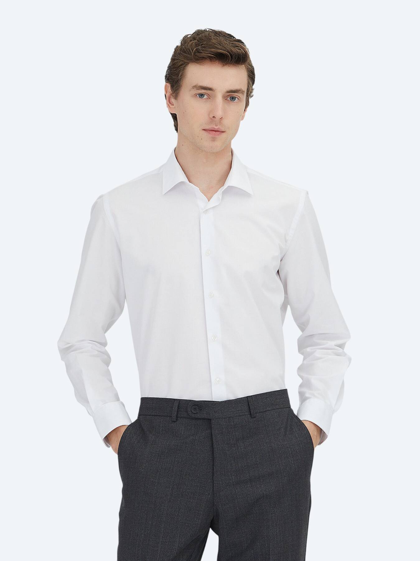 Kırık Beyaz Regular Fit Dokuma Klasik Pamuk Karışımlı Gömlek