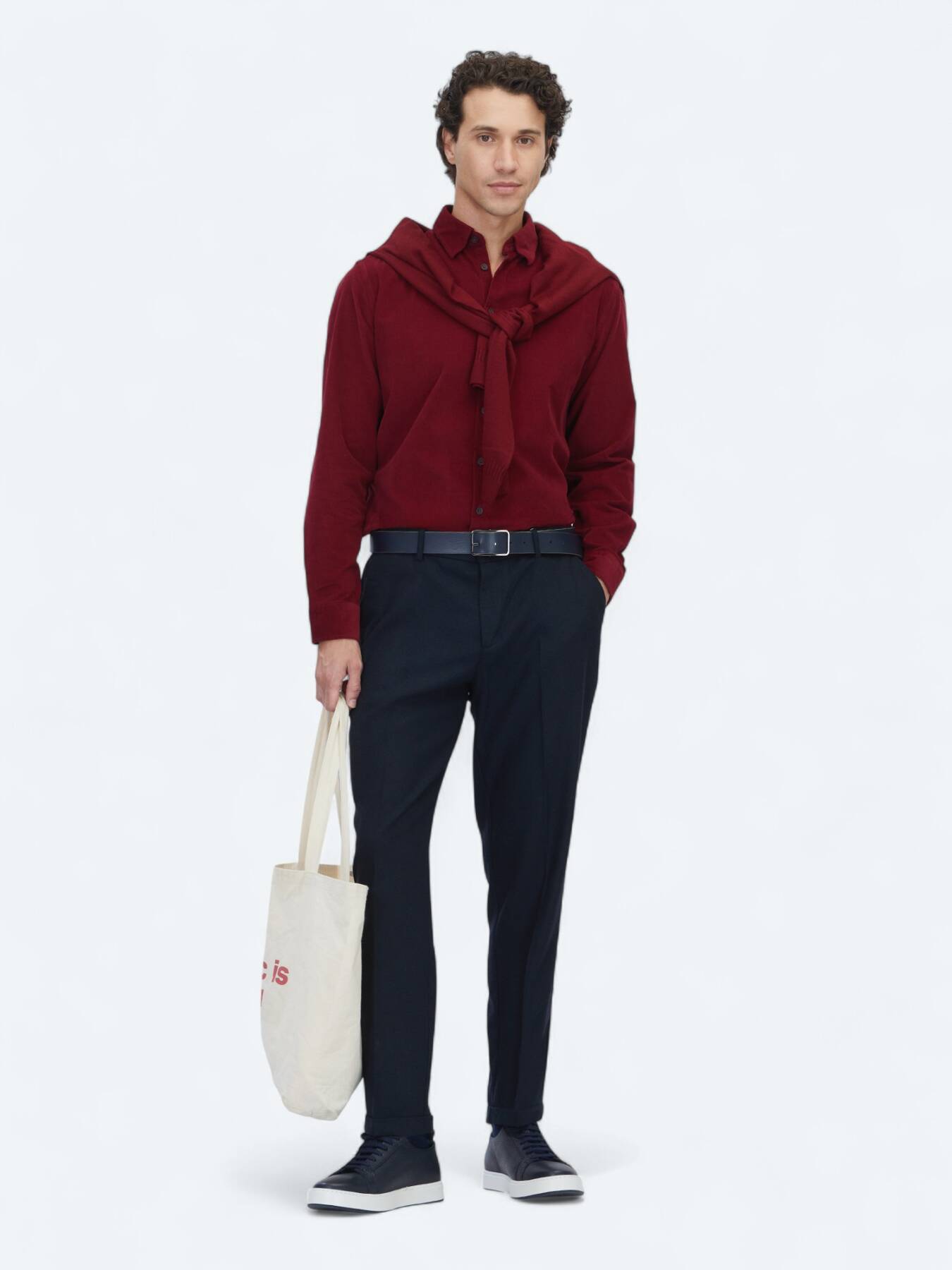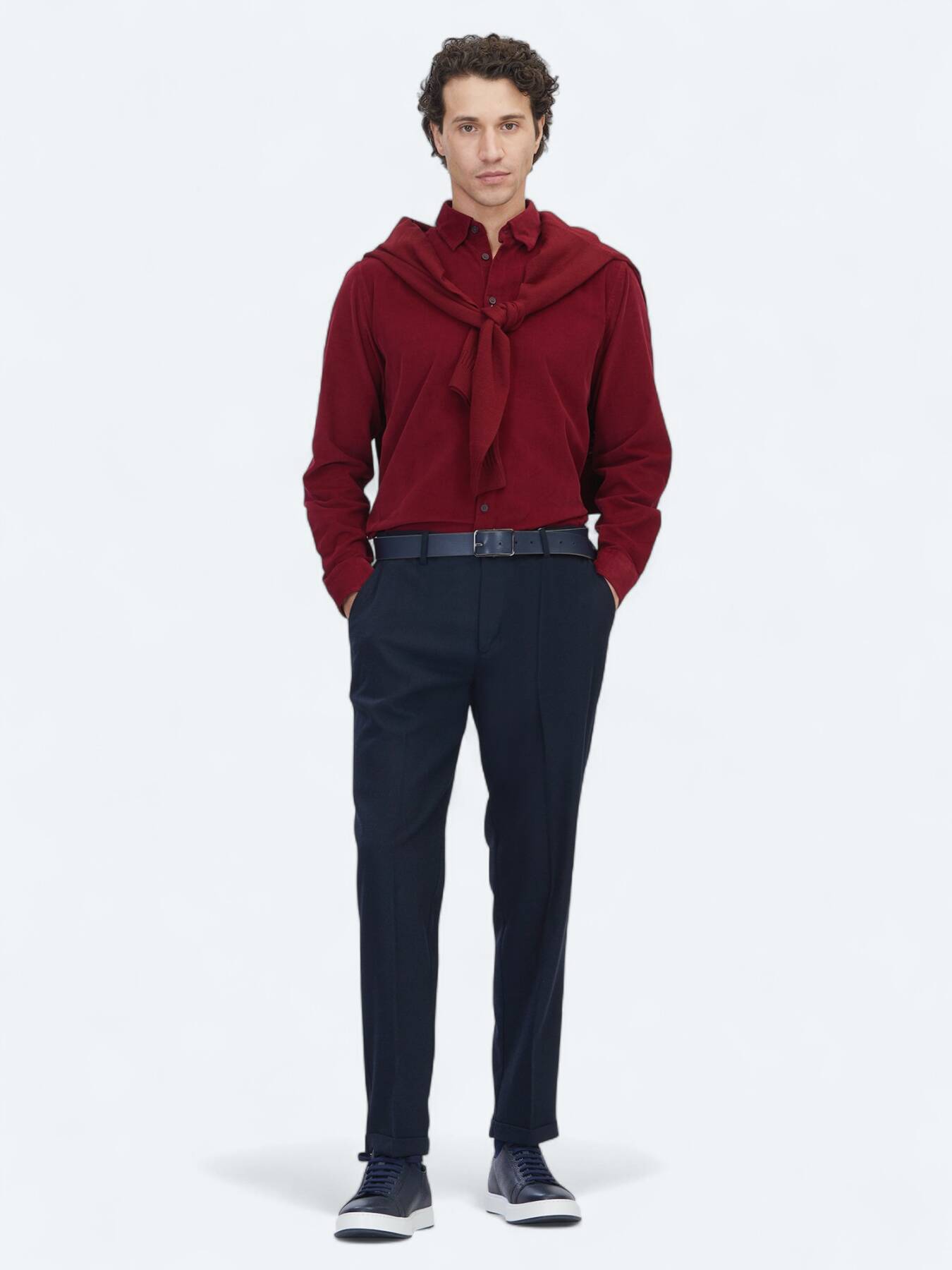 Kırmızı Çizgili Regular Fit Dokuma Kadife Casual %100 Pamuk Gömlek
