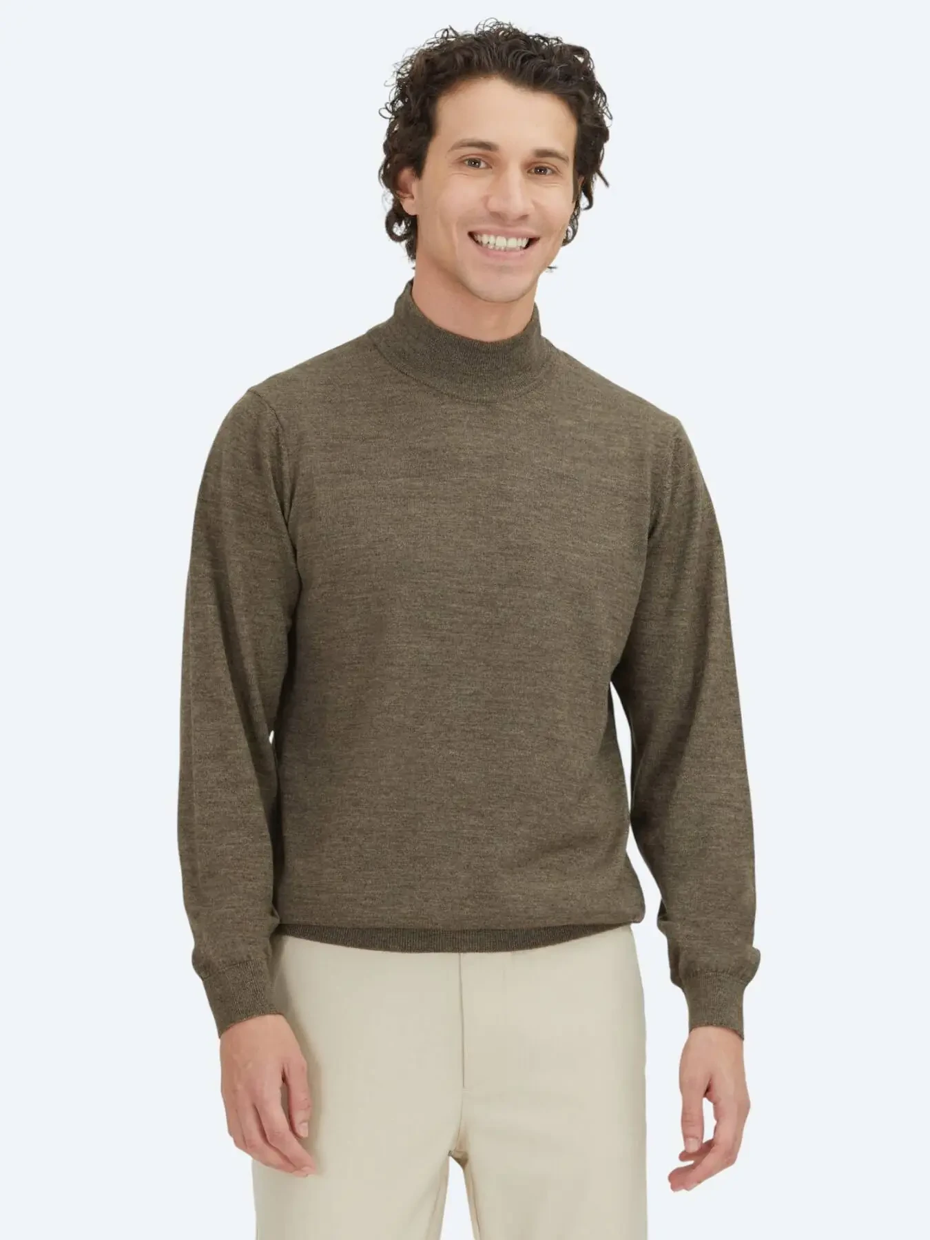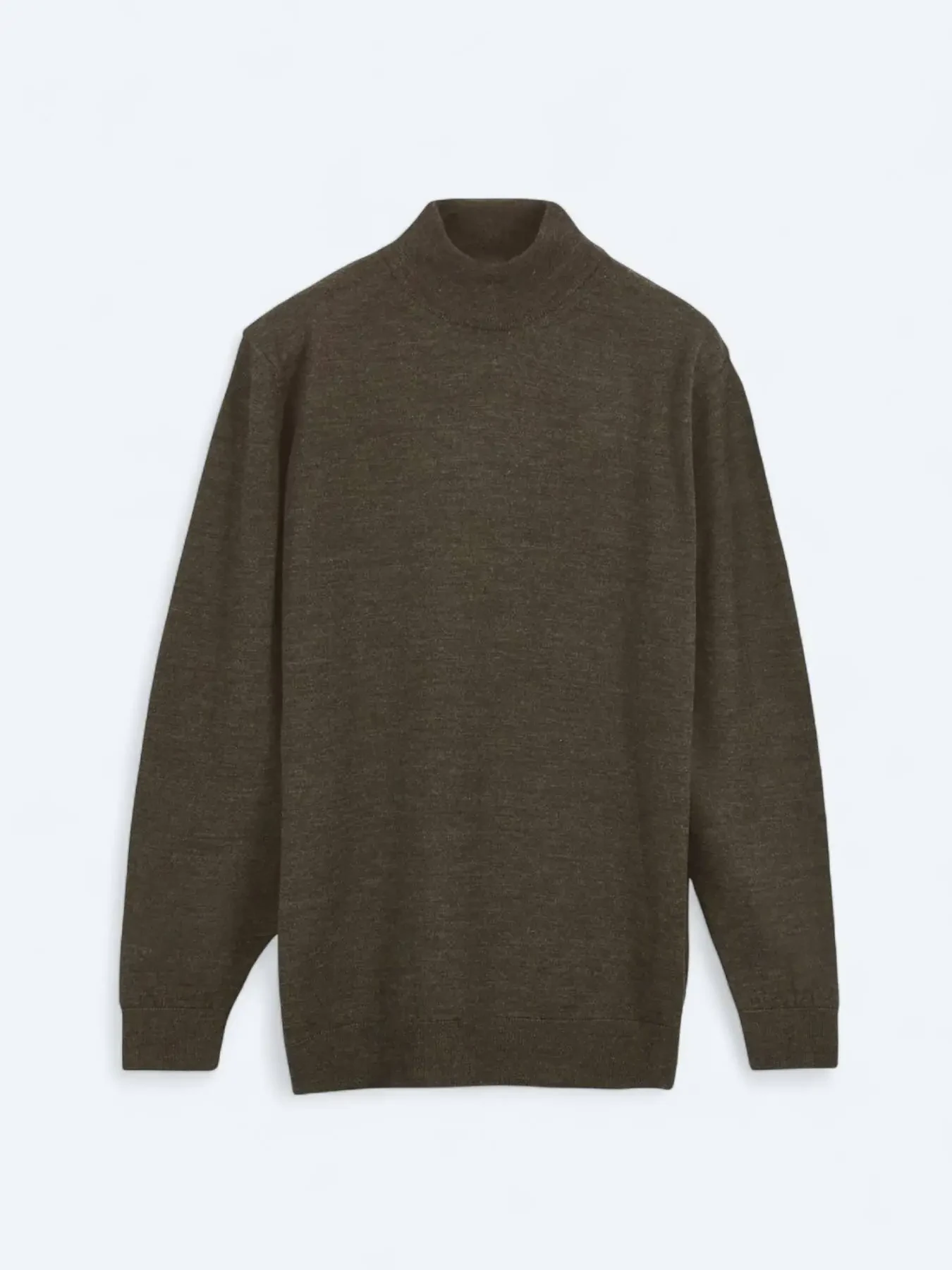 Koyu Bej Yarım Balıkçı Yaka Düz Örgü Yün Karışımlı Triko Kazak - 1