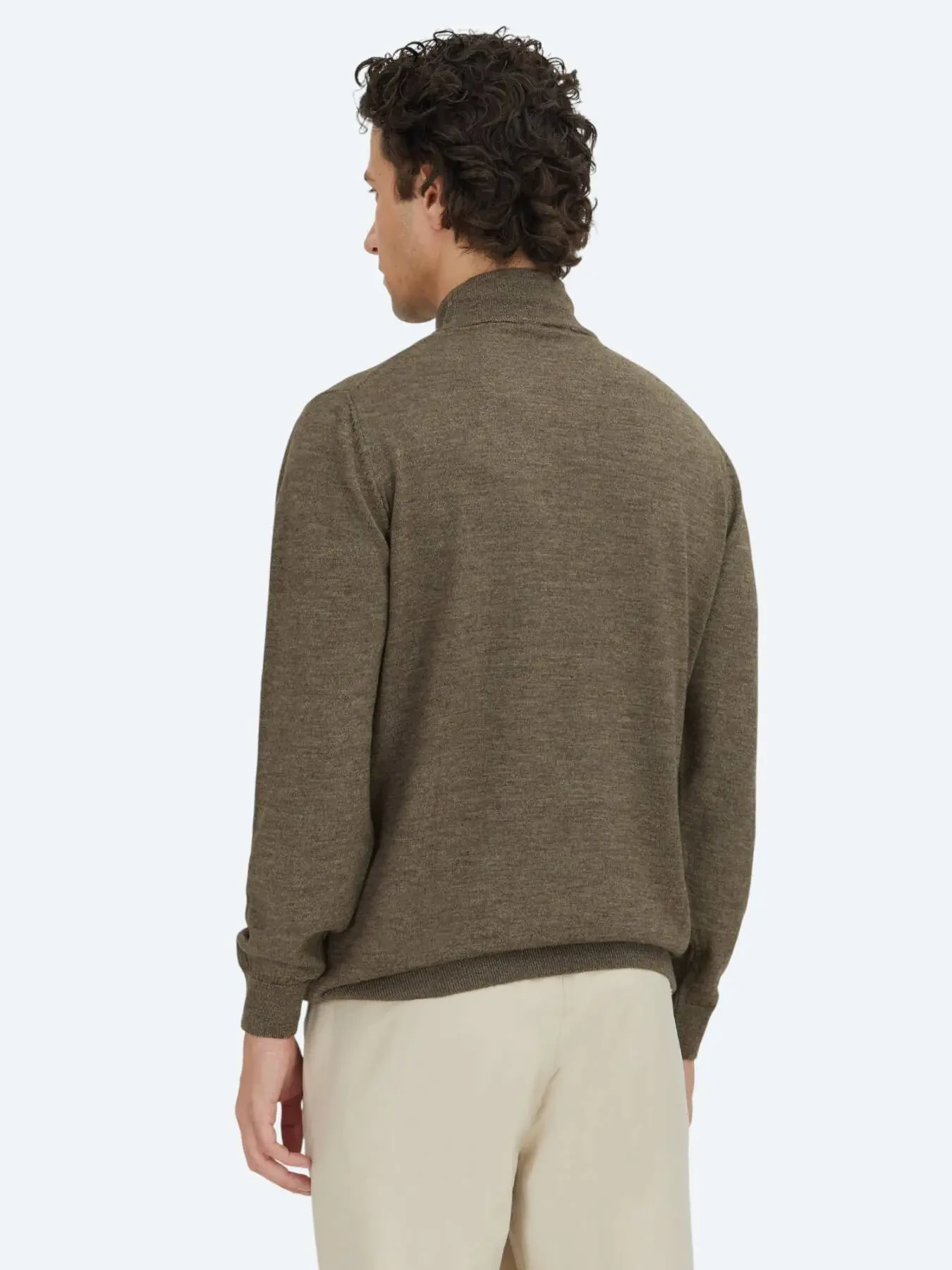 Koyu Bej Yarım Balıkçı Yaka Düz Örgü Yün Karışımlı Triko Kazak - 3