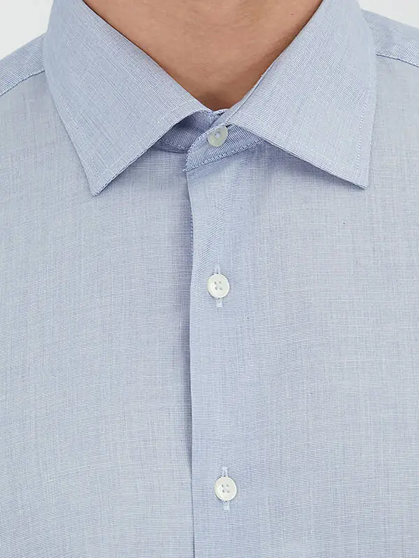 Koyu Lacivert Regular Fit Dokuma Klasik Pamuk Karışımlı Gömlek - 6