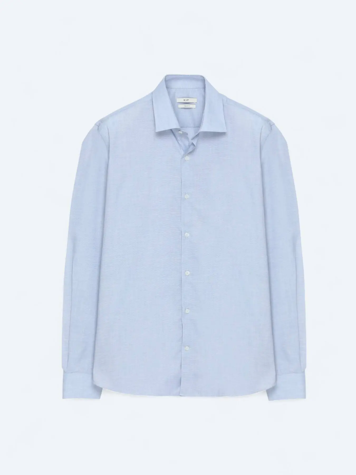Koyu Lacivert Regular Fit Dokuma Klasik Pamuk Karışımlı Gömlek - 1