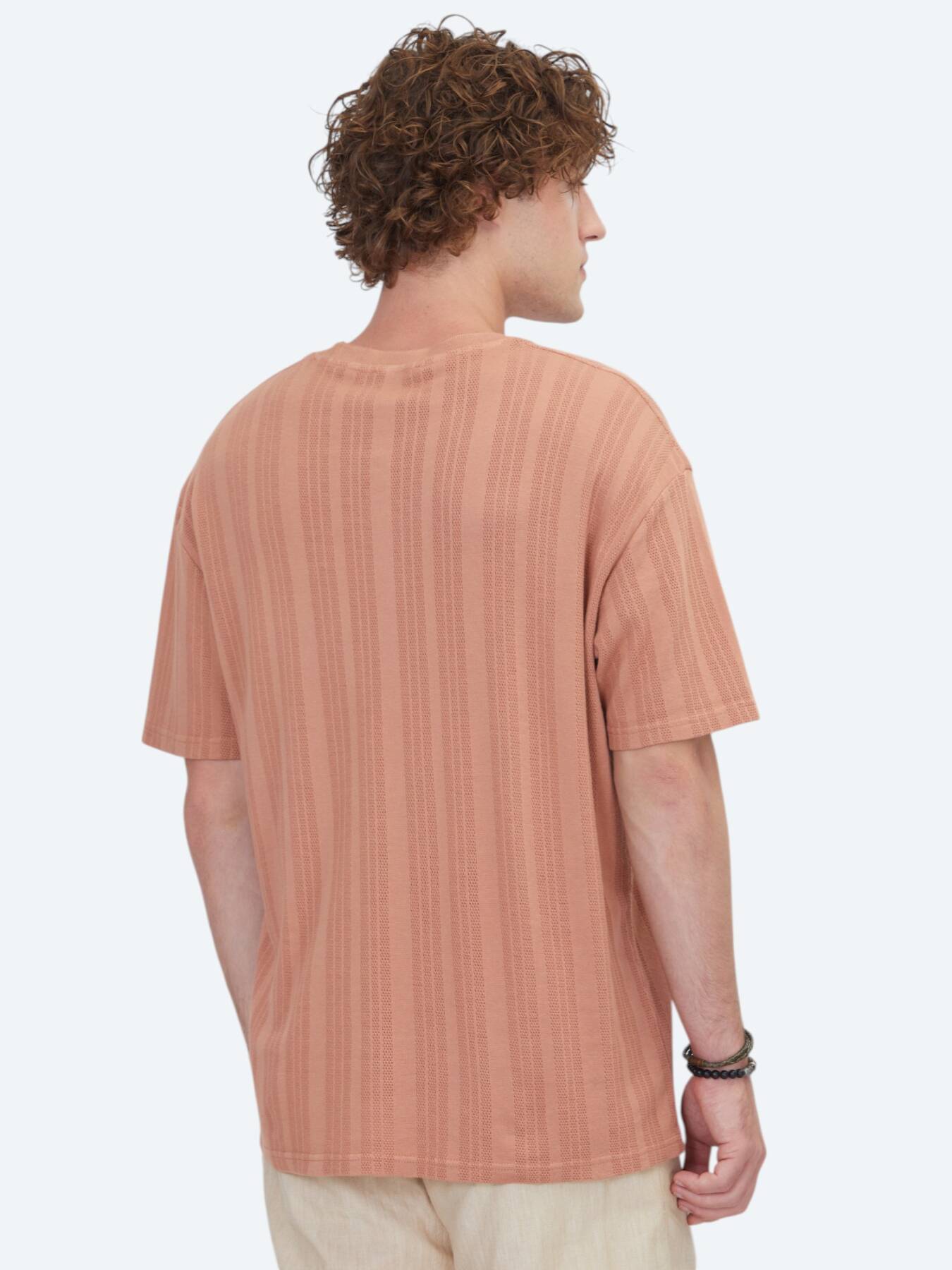 Koyu Somon Çizgili %100 Pamuk T-Shirt