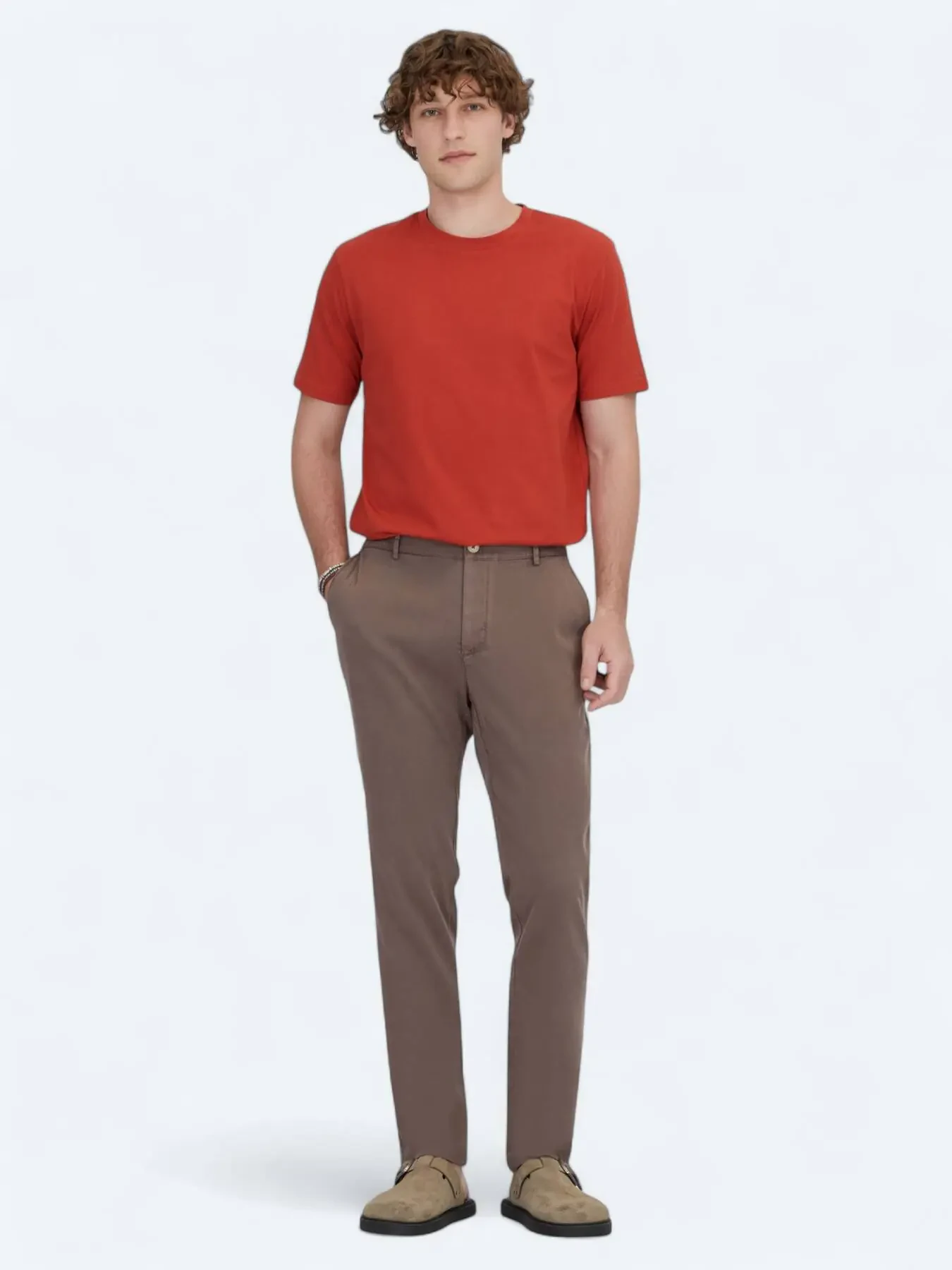 Koyu Turuncu Bisiklet Yaka %100 Pamuk T-Shirt