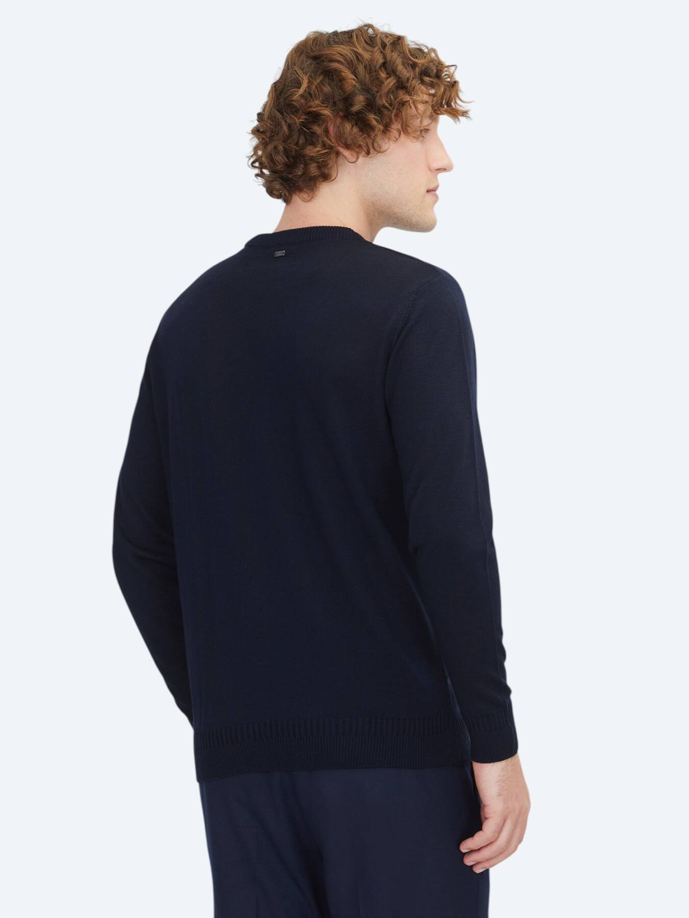 Gelince Haber VerDüz örgü dokusuyla sade bir şıklık sunan bu lacivert triko, kış günlerinde ideal bir konfor sağlar.