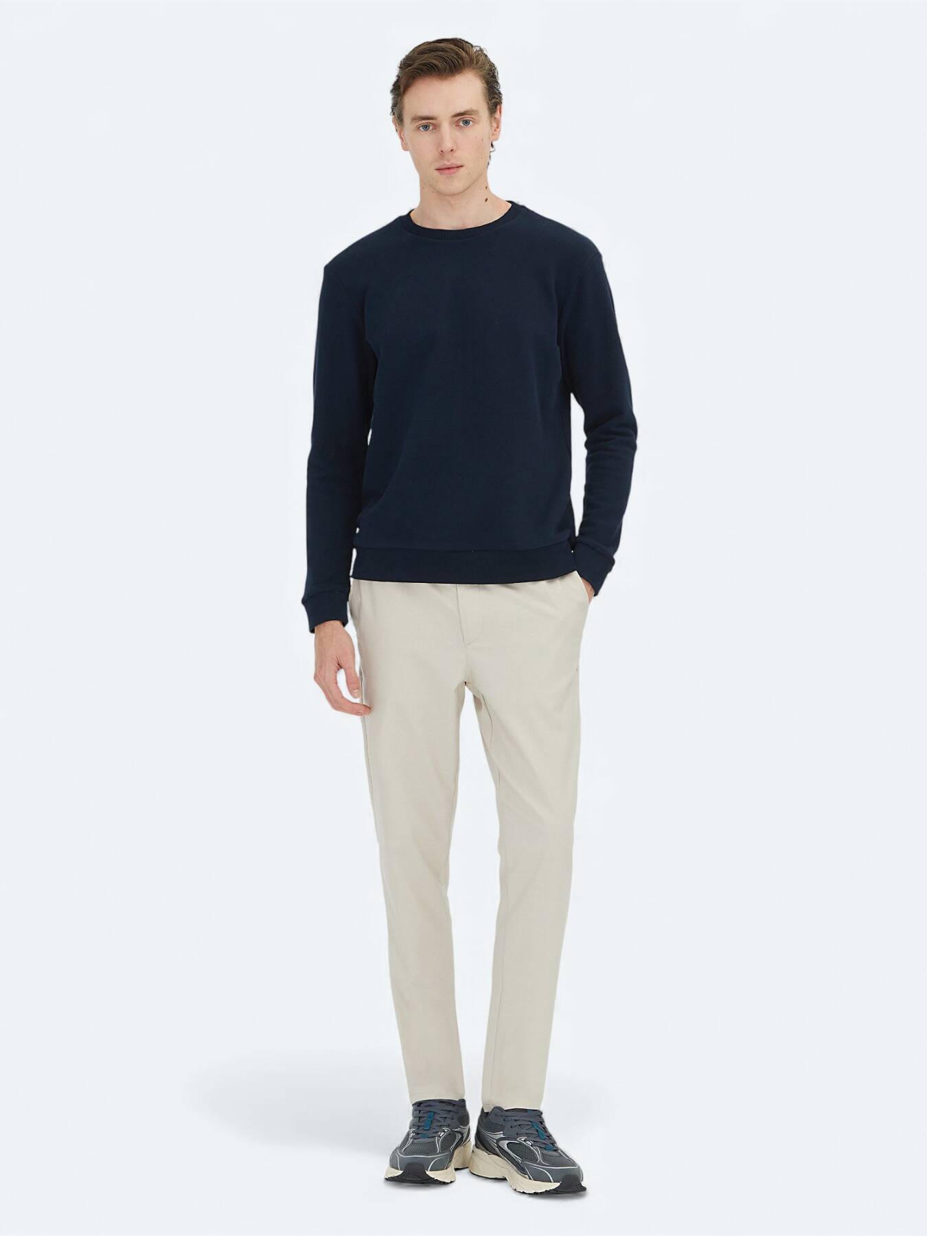Yumuşak dokusu ve ideal regular fit kesimi sayesinde gün boyu konfor sağlarken, lacivertin asaletini günlük stilinize taşır.