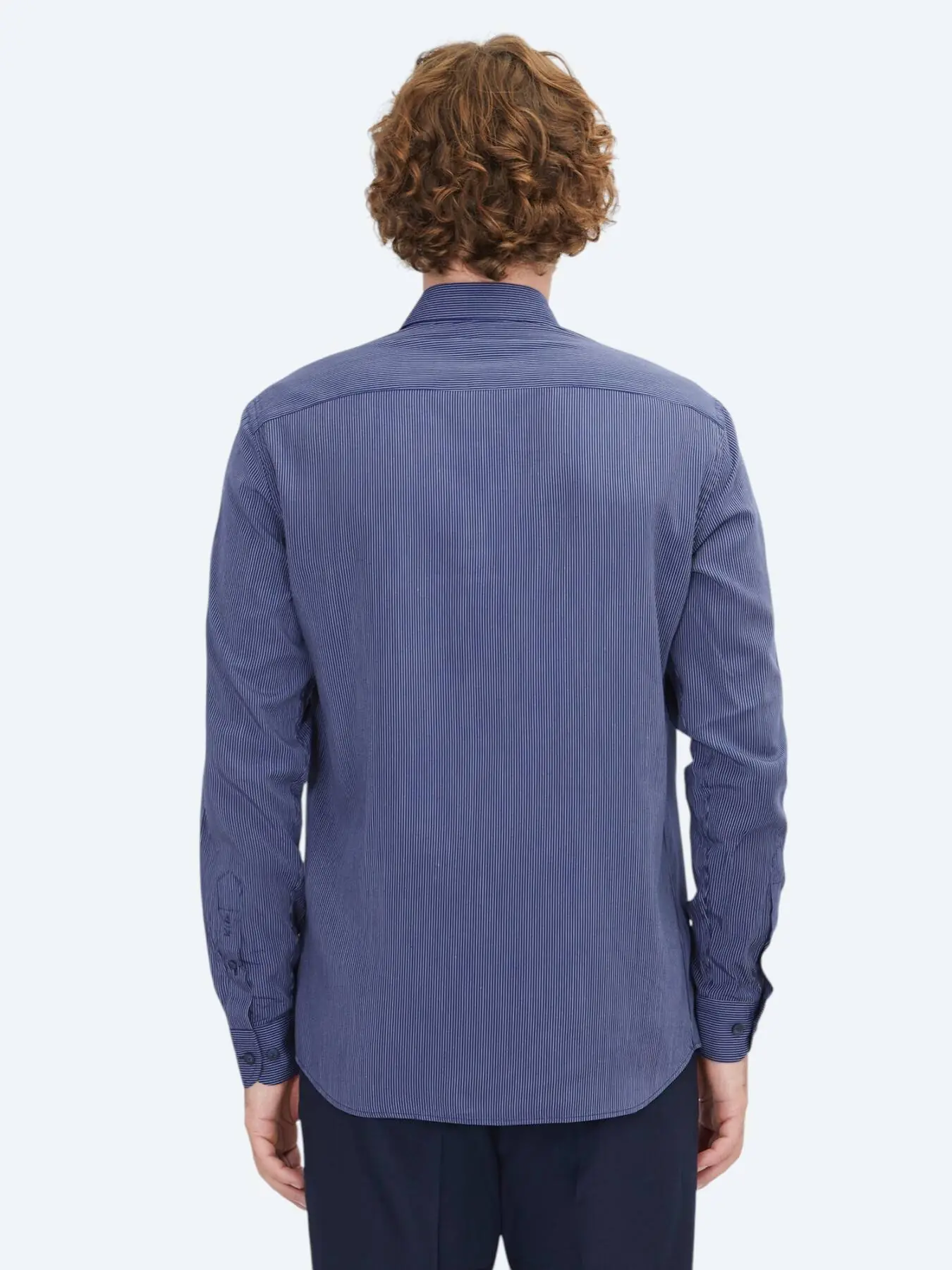 Lacivert Çizgili Regular Fit Dokuma Casual Gömlek