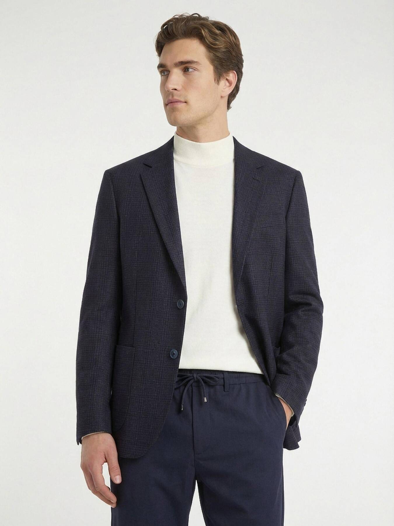 Gelince Haber VerLacivert desenli yün karışımlı erkek ceket, zengin doku ve desen detayıyla günlük stilinizi şık bir şekilde tamamlar. Yün karışımlı kumaşı ideal ısı dengesi sağlar ve yarım astarlı yapısıyla konforlu bir kullanım sunar. Vücuda dengeli oturur ve jean ya da chino pantolonlarla kolayca kombinlenebilir.