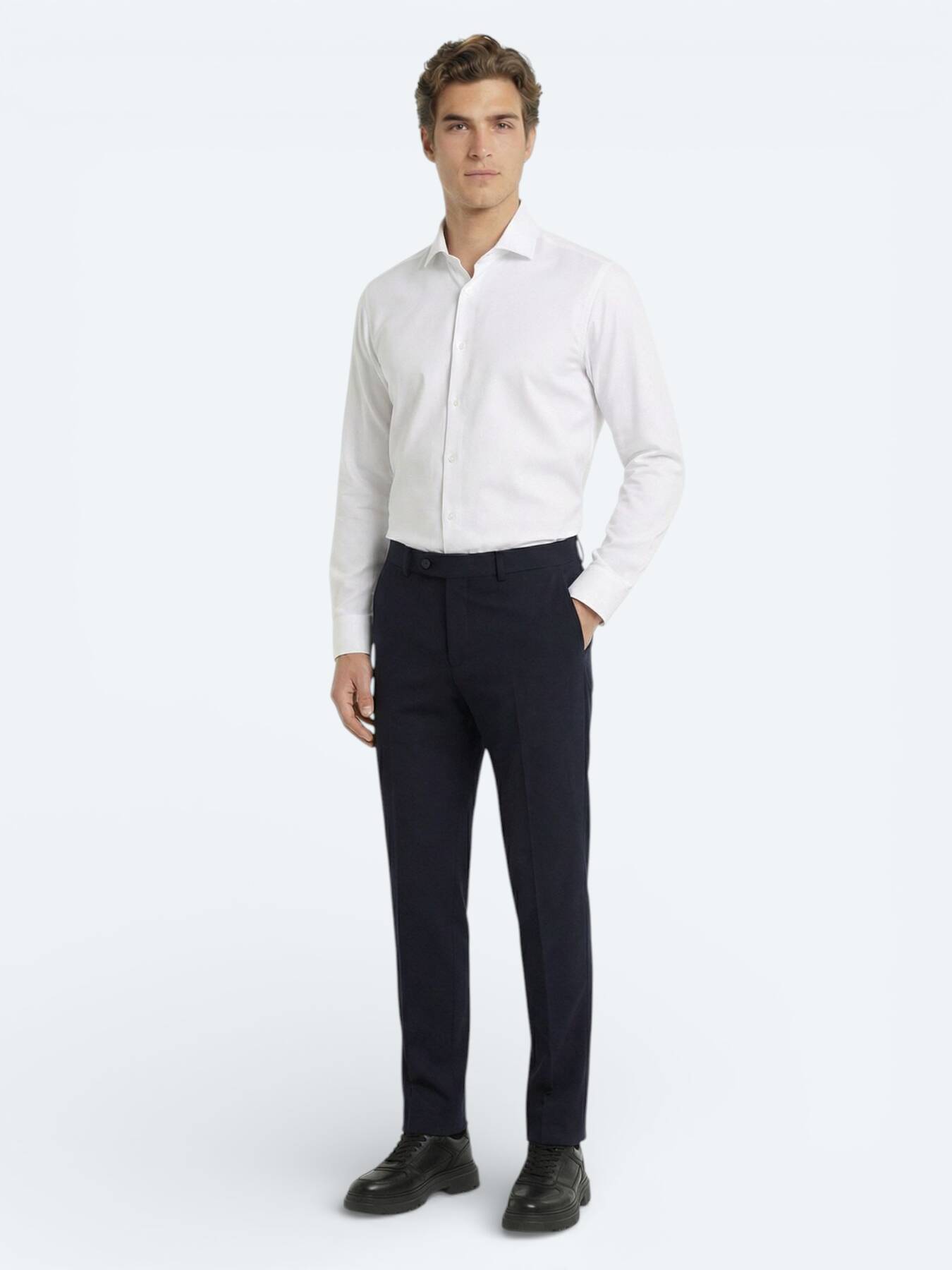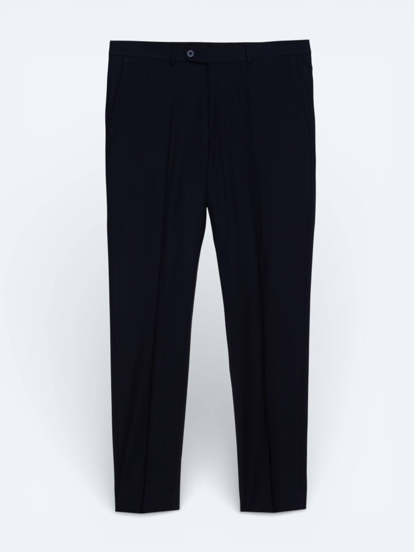 Lacivert Dokuma Fitted Fit Klasik Yün Karışımlı Pantolon