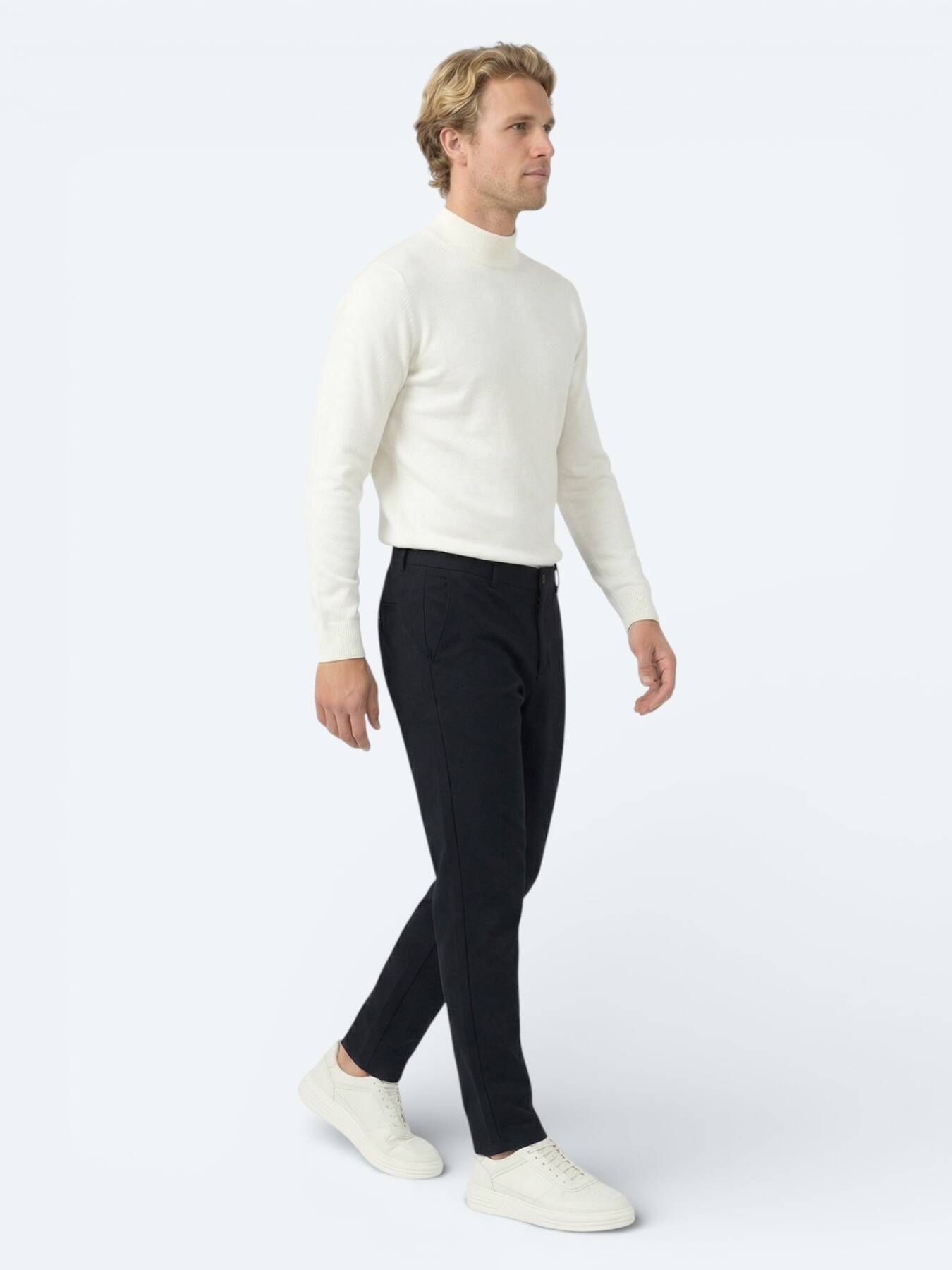 Gelince Haber VerBu kombin, hem ofis şıklığını hem de hafta sonu rahatlığını bir araya getiriyor. Yarım balıkçı yaka triko, chino pantolonun klasik duruşuna modern bir dokunuş katarken, sneakerlar görünümü dinamikleştiriyor. Soğuk günlerde üzerine bir kaşe kaban ekleyerek stilinizi tamamlayabilirsiniz.