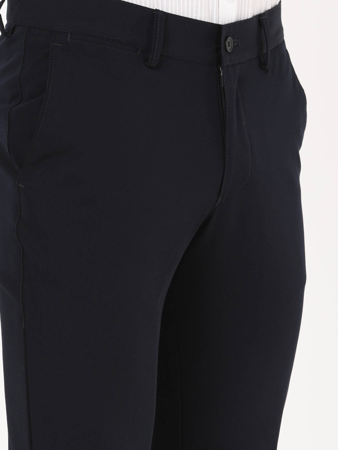 Lacivert Dokuma Slim Fit Casual Pantolon