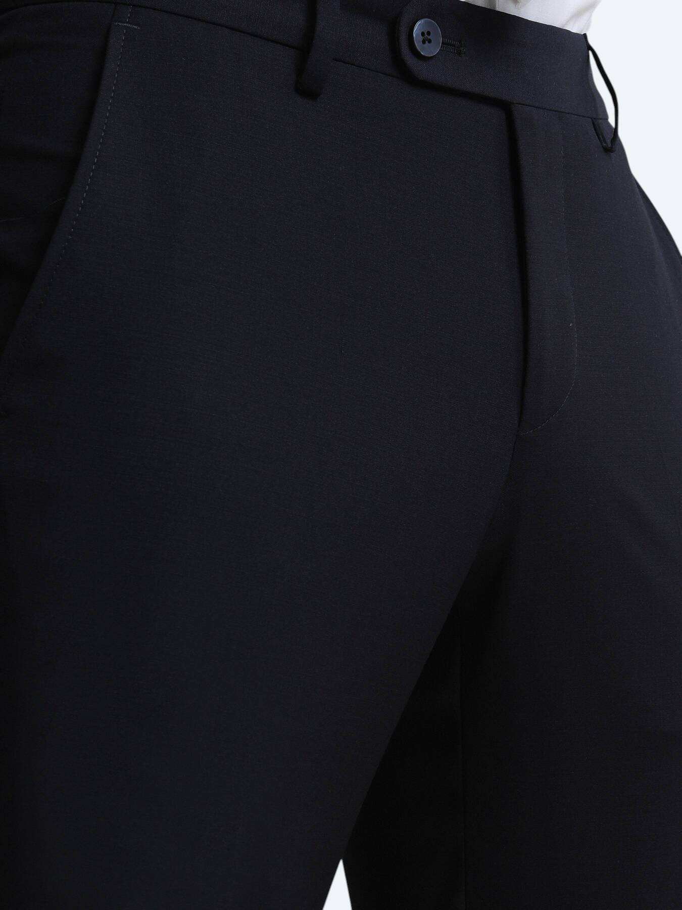 Lacivert Dokuma Slim Fit Klasik Yün Karışımlı Pantolon