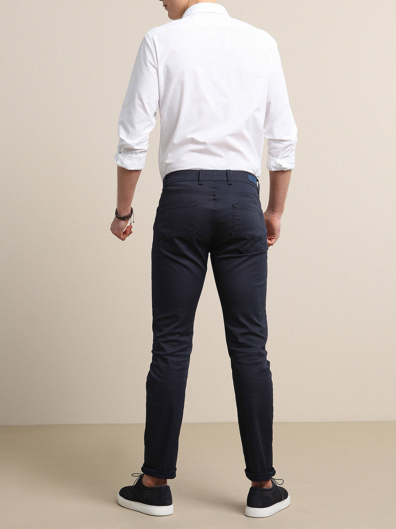 Lacivert Düz Dokuma Fitted Fit Casual Pamuk Karışımlı Pantolon