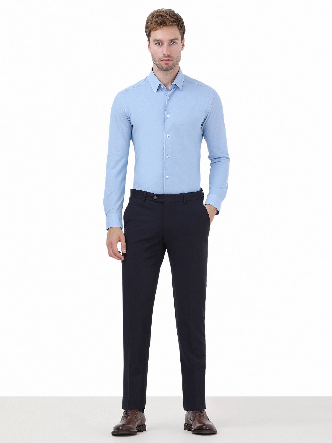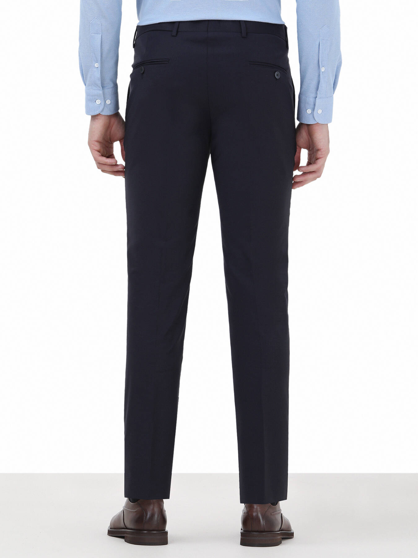 Gelince Haber VerYün karışımlı kumaşla tasarlanan, düğme detaylı biyeli arka cepli, önü düğmeli, klasik paça, fitted fit lacivert pantolon. Çok yönlü kullanım sağlayan yan cep. Doğal ve yumuşak dokusuyla hem ofiste hem de özel davetlerde konforlu bir stil deneyimi.