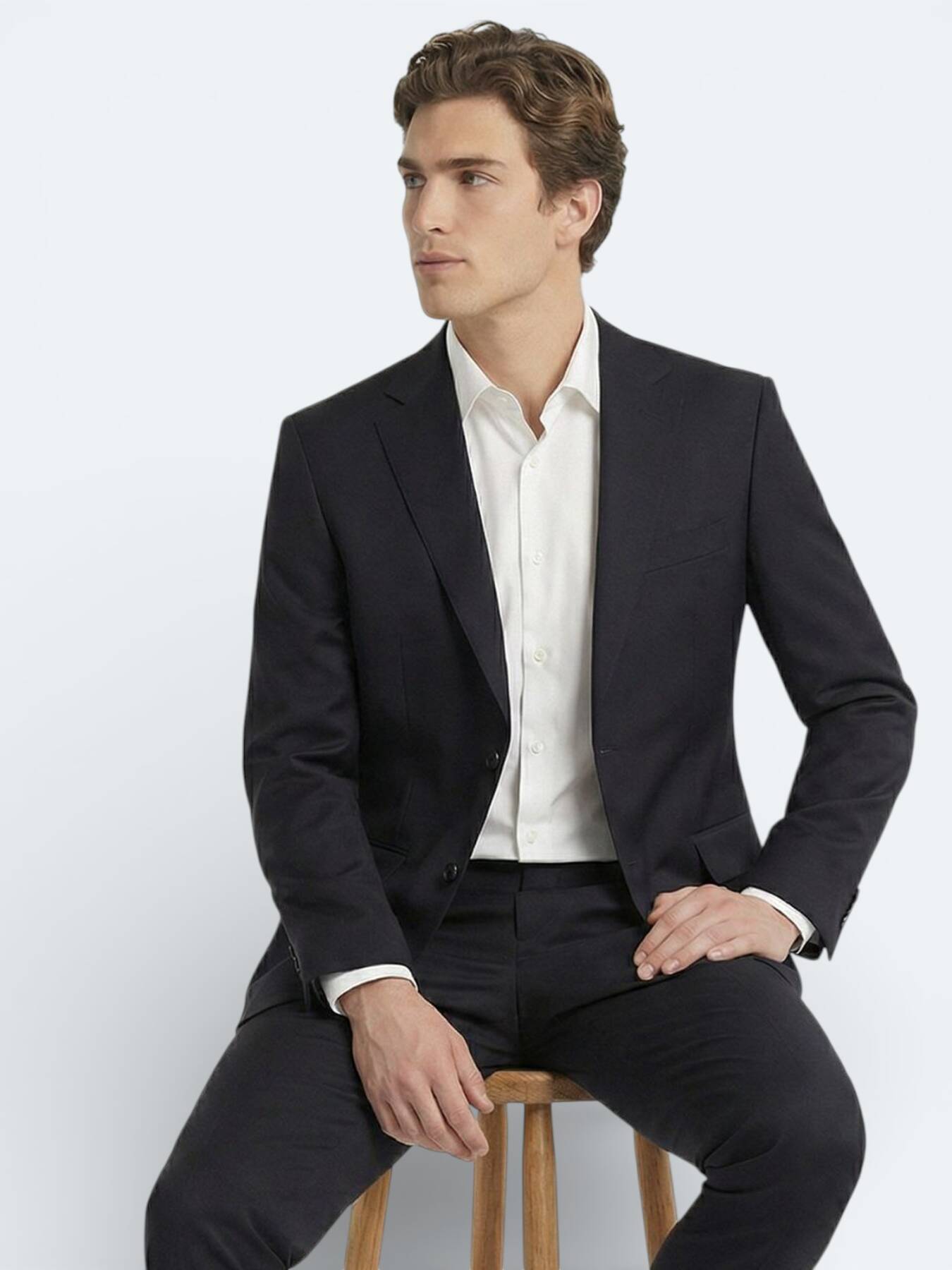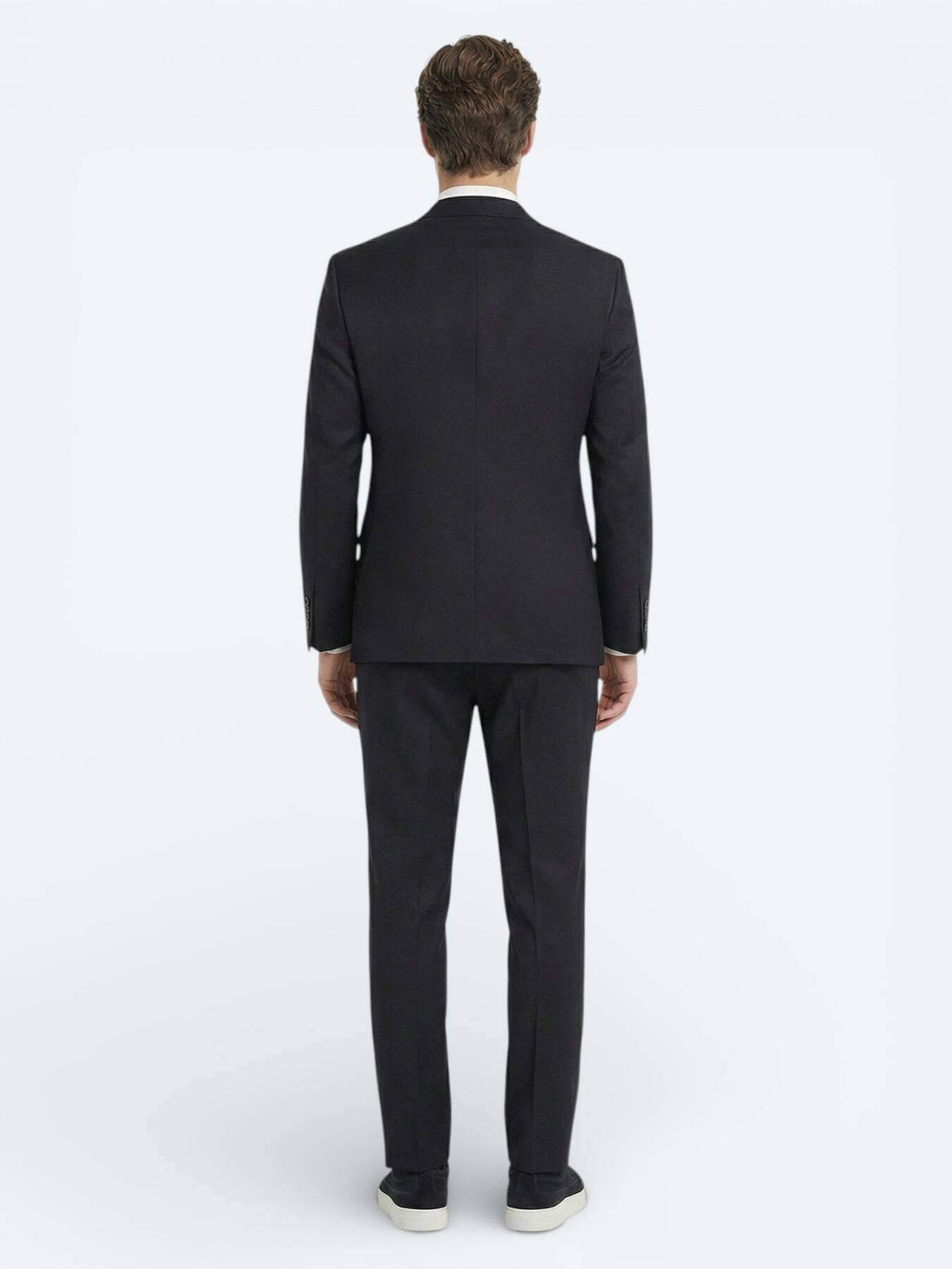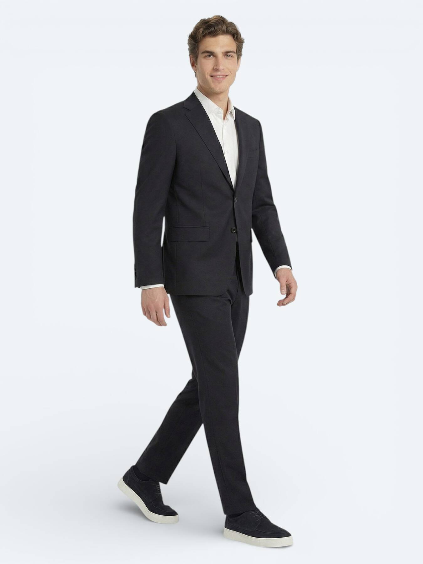 Lacivert Düz Modern Fit Yün Karışımlı Takım Elbise