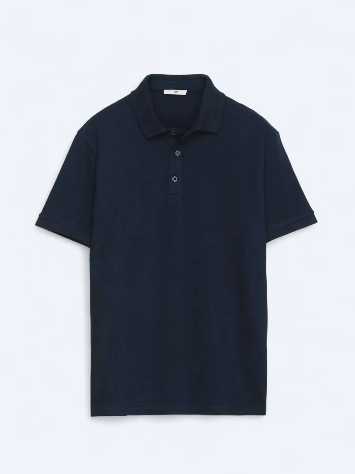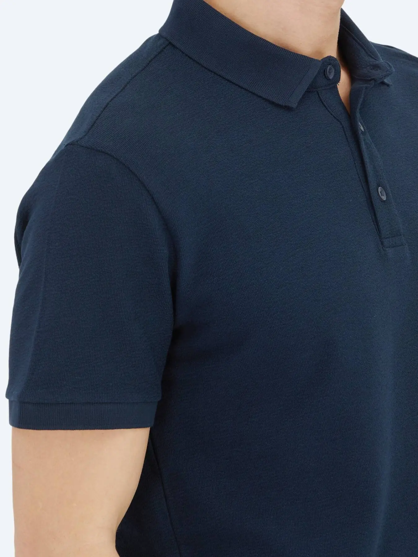 Navy Blue Plain Polo Neck 100% Cotton T-Shirt - 6