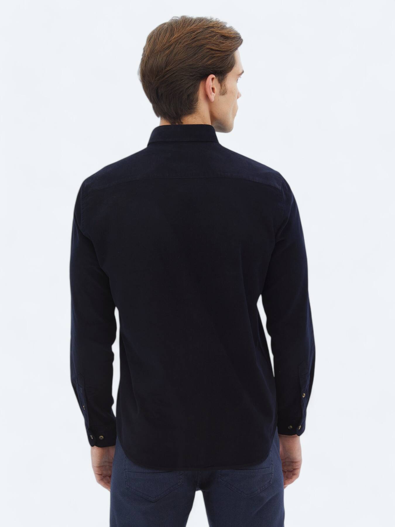 Lacivert Fitilli Regular Fit Uzun Dokuma Kadife Casual %100 Pamuk Gömlek
