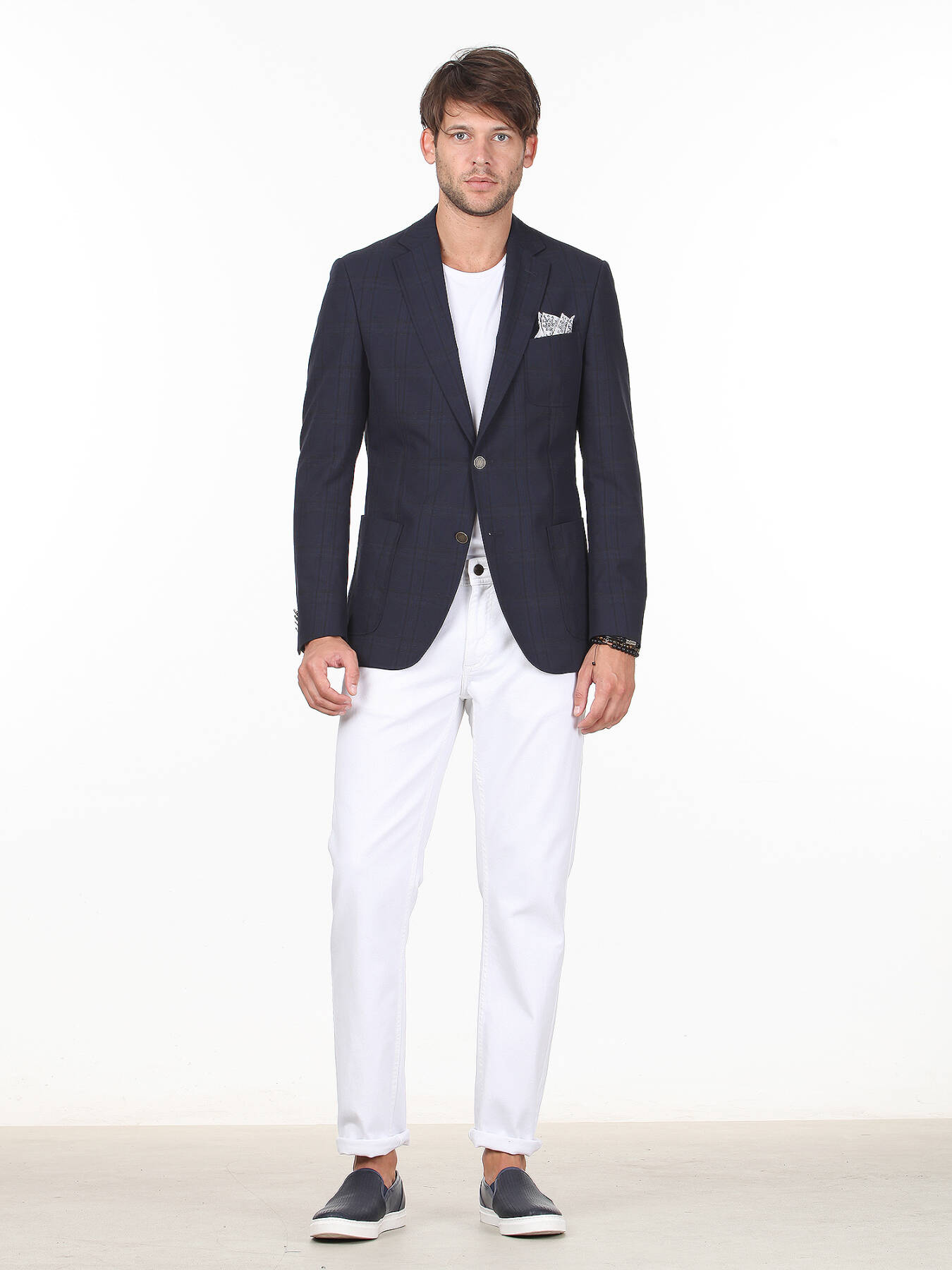 Lacivert Kareli Modern Fit Pamuk Karışımlı Ceket