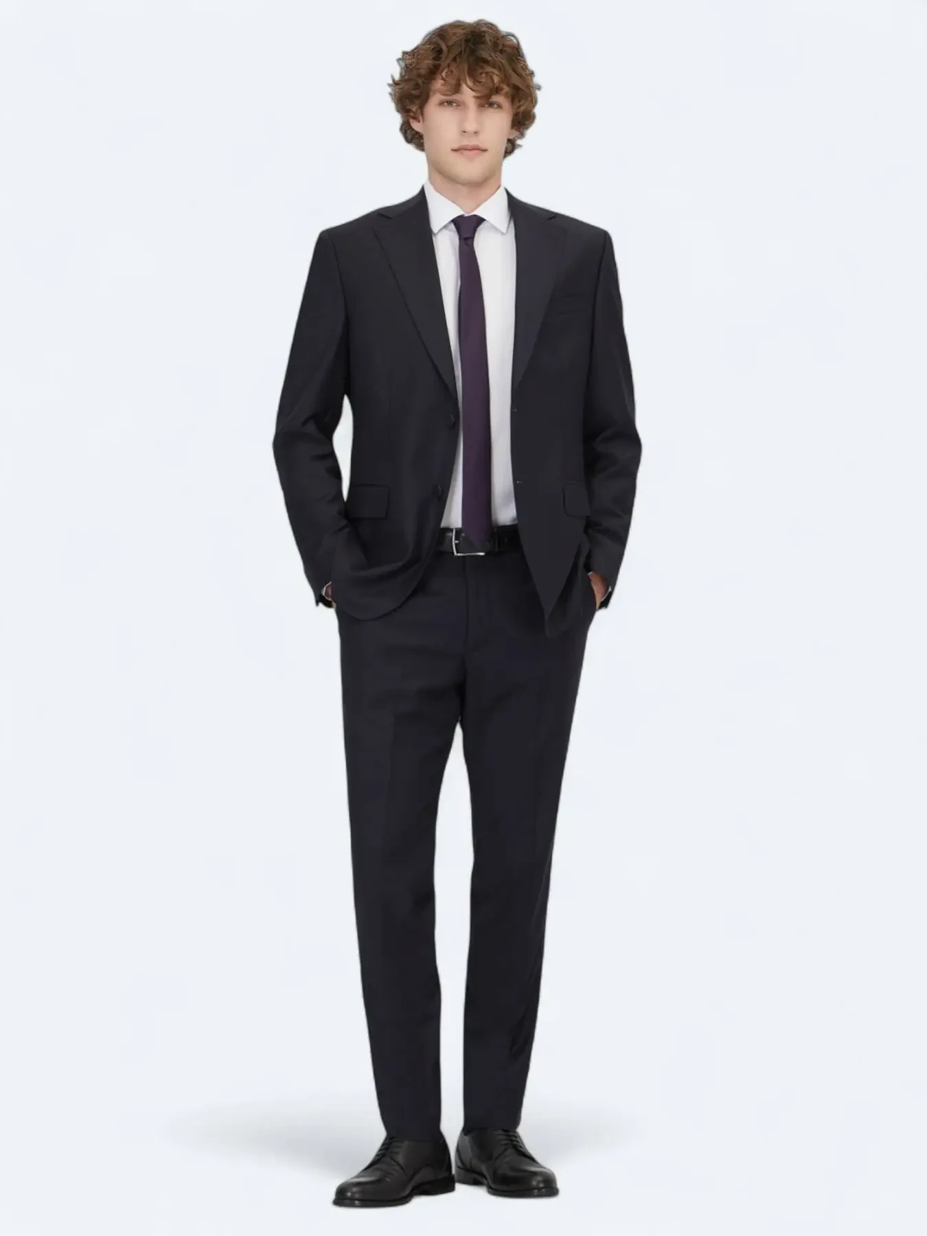 Lacivert Modern Fit Yün Karışımlı Takım Elbise