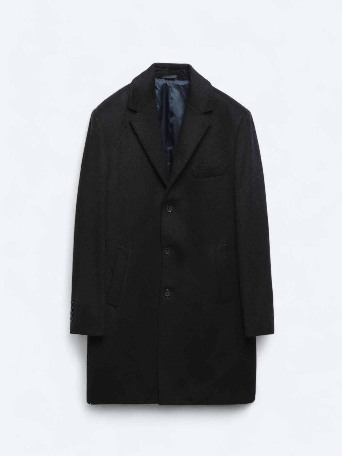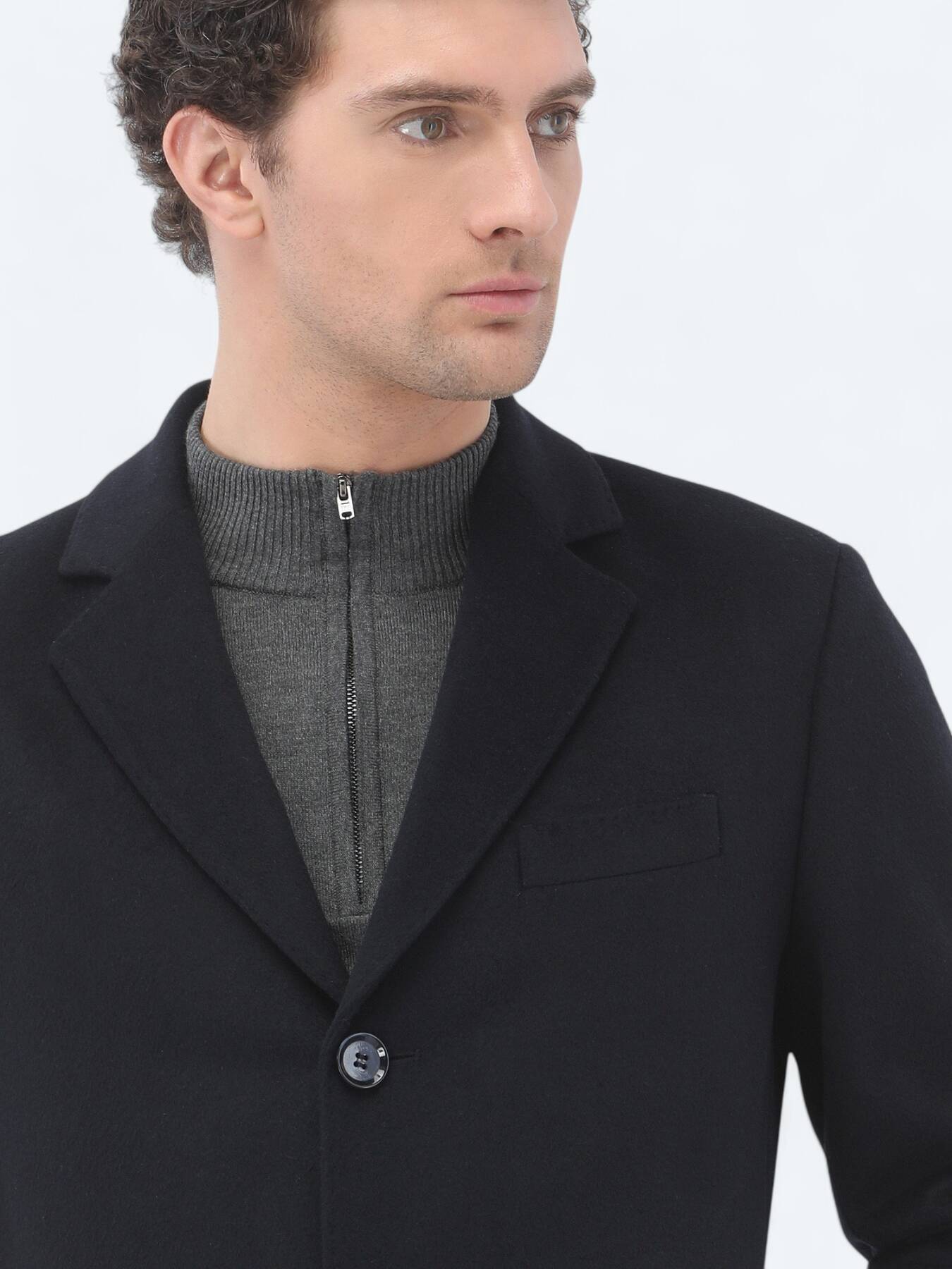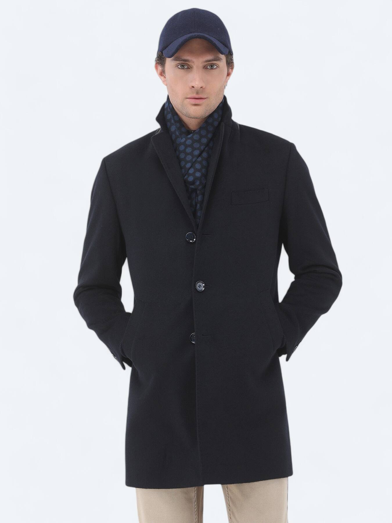 Lacivert Regular Fit Kelebek Yaka Klasik Dokuma Palto