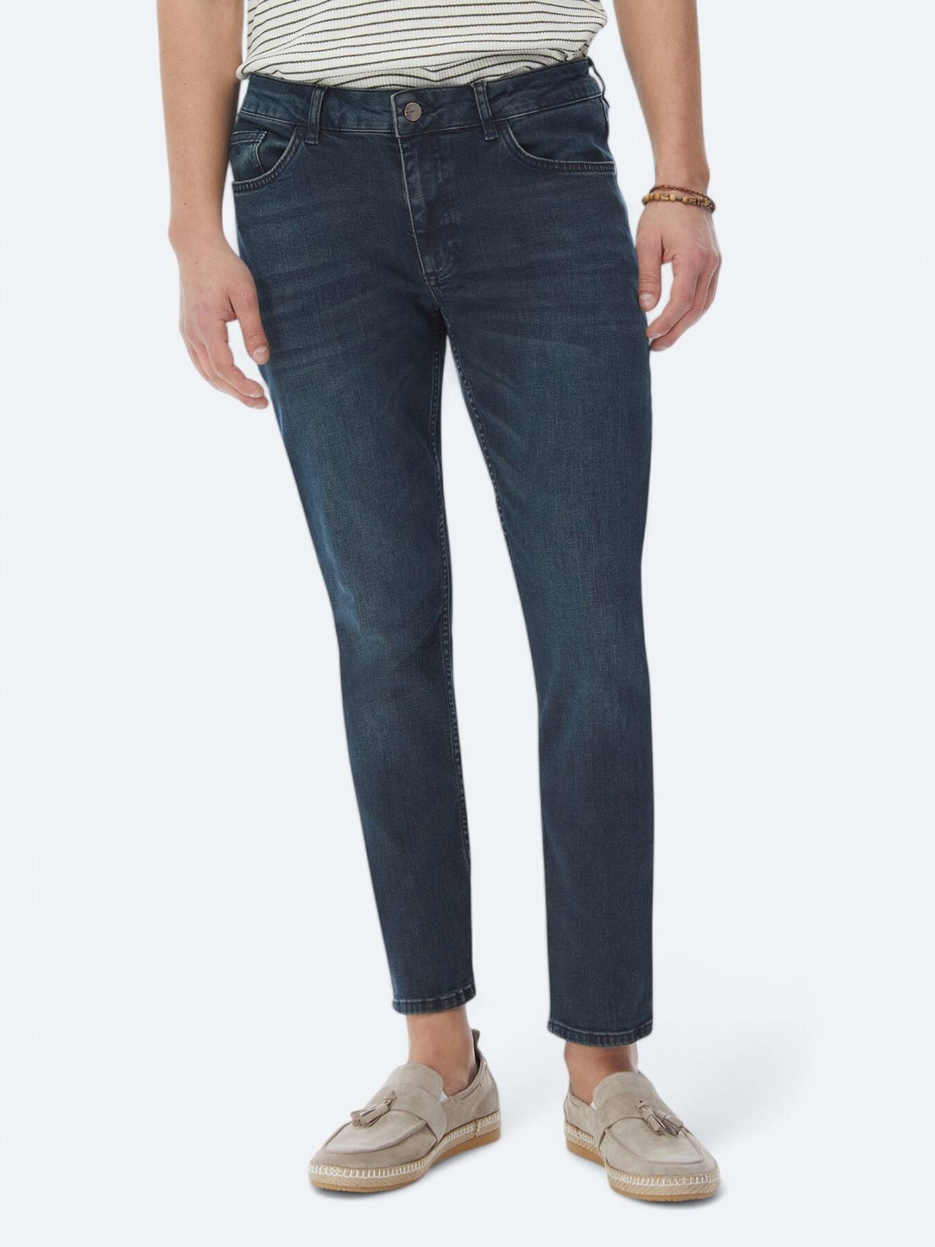 Lacivert Slim Fit Denim Pamuk Karışımlı Pantolon
