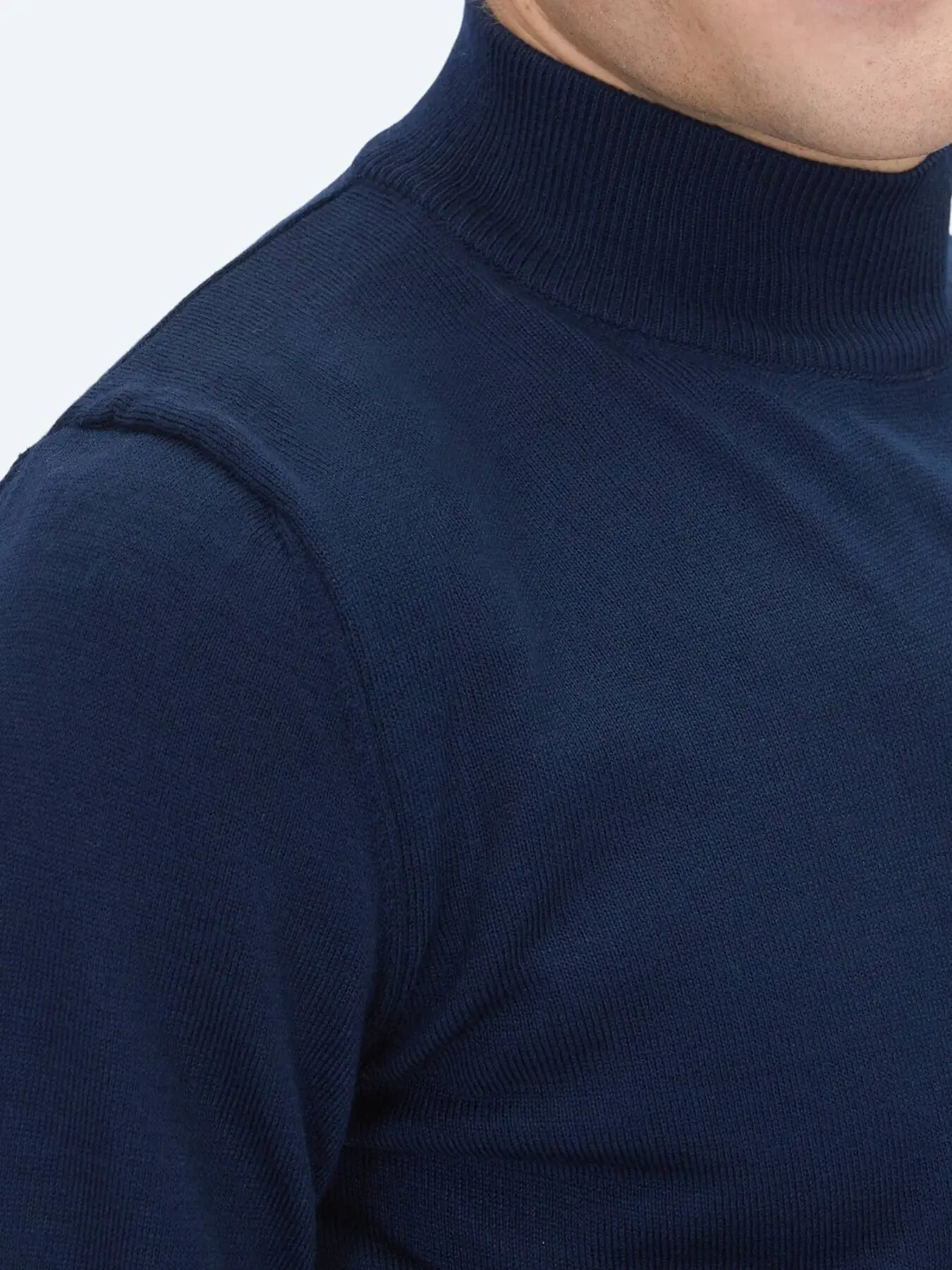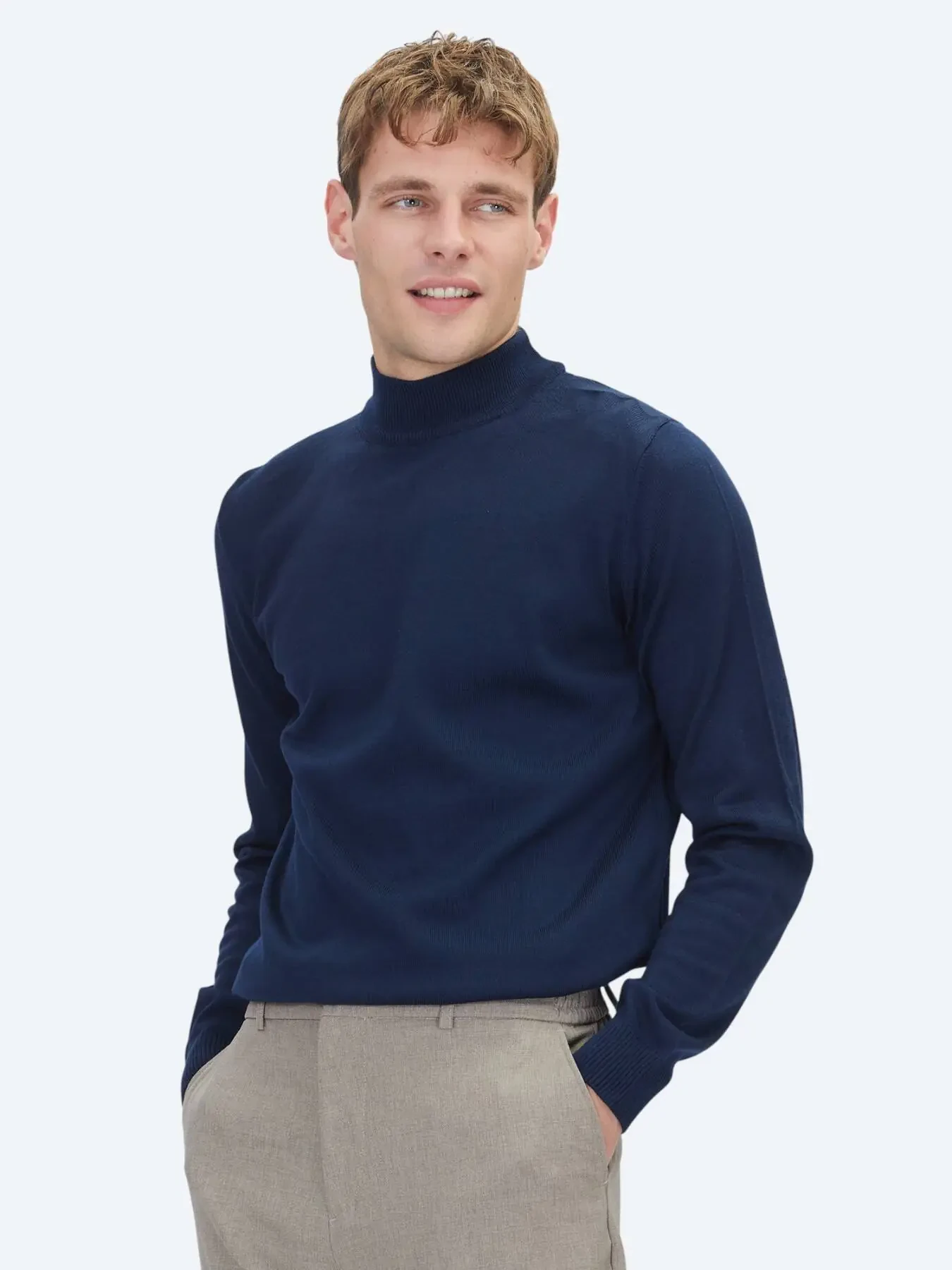 Lacivert Yarım Balıkçı Yaka Düz Örgü Triko Kazak - 1